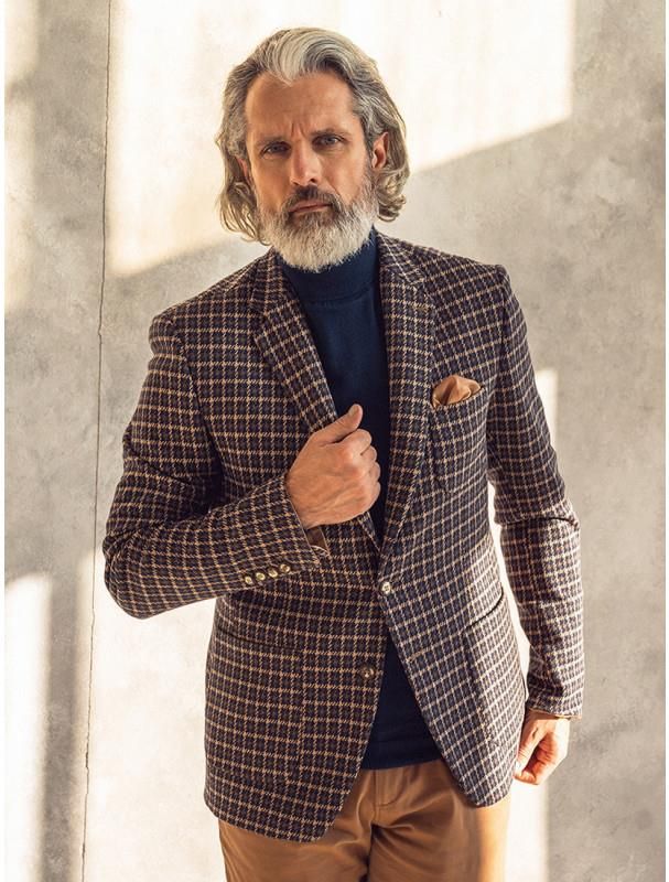 Klasyczna marynarka Gładkie marynarki pasują na typowe casualowe wyjścia. Poprzez ich gładką fakturę można je zestawiać z mocnymi kolorami i deseniami koszul. Dodatkowe informacje Marynarka w kolorze brązu, granatu i beżu Tkanina w kratkę i pepitę Kieszenie bez klap Zapinana na dwa guziki Brązowa guziki Klasyczna kieszeń na piersi Bez podszewki Wyprodukowana w Polsce Gwarancja: 24 m-ce Skład marynarki 83% wiskoza 12% poliester 5% elastan Skład podszewki 65% acetat35% poliester
