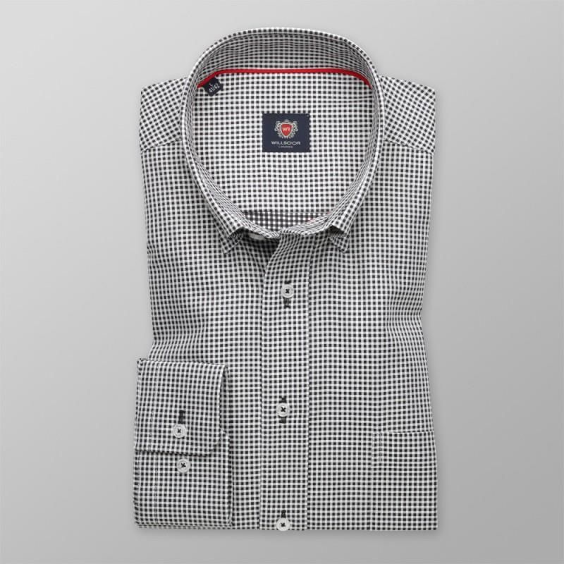 Taliowana koszula w czarno-białą kratkę z podpinanym kołnierzykiem, splot two-ply