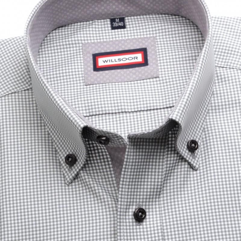 Taliowana koszula w drobną szaro-białą pepitkę z podpinanym kołnierzykiem, splot two-ply z formułą Easy Care