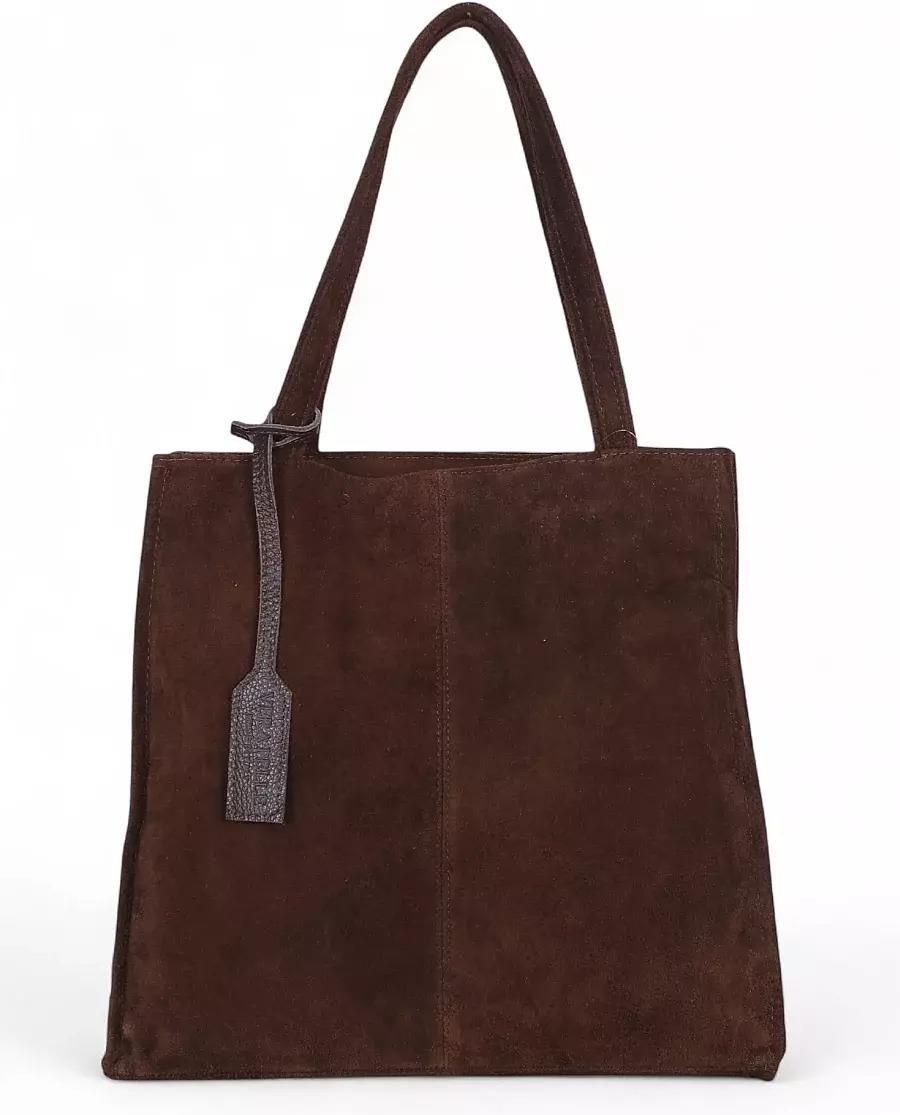 VERA PELLE – duża torebka zamszowa typu shopper bag Marka VERA PELLE od lat uznawana jest za lidera włoskiej galanterii skórzanej. Jej produkty wyróżniają się perfekcyjnym wykonaniem, solidnymi okuciami oraz najwyższej jakości skórami naturalnymi. Prezentowany model to torebka zamszowa shopper wykonana z miękkiego, naturalnego włoskiego zamszu. To propozycja dla kobiet ceniących elegancję i wygodę. Dzięki dużej pojemności bez trudu zmieści dokumenty formatu A4, dlatego świetnie sprawdzi się jako duża torebka zamszowa do pracy i na co dzień. Zalety zewnętrzne: włoski naturalny zamsz o pięknej fakturze mocne, wygodne rączki do noszenia w dłoni i na ramieniu ozdobna zawieszka z logo VERA PELLE praktyczna tylna kieszonka na zamek klasyczny, minimalistyczny fason – pasuje do wielu stylizacji Wnętrze: duża, pojemna komora główna wytrzymała podszewka kaletnicza kieszonka na suwak dodatkowa kieszonka otwarta np. na smartfon całość zamykana na solidny suwak Wymiary: wysokość: 37 cm szerokość dna: 39 cm głębokość dna: 9 cm Dlaczego warto? duża torebka zamszowa na A4 – praktyczna i elegancka miękki, naturalny włoski zamsz wysoka trwałość i perfekcyjne wykonanie 100% made in Italy uniwersalny design idealny do pracy, szkoły i na co dzień