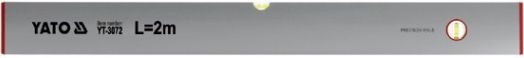 YATO ŁATA MURARSKA PION / POZIOM 200cm 3072 YATO 5906083930720 YT-3072 Profesjonalna łata budowlana wykonana z aluminiowego profilu 100x18 mm.Grubość ścian 1,1 mm.Posiada dwie libelle .Końce łaty zabezpieczone odbojnikami z wysoko udarowego tworzywa.Długość: 2000 mm.