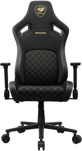 COUGAR Fotel Gamingowy Defensor Gold F - 155 stopni, 120 kg, Czarny Złoty COUGAR GAMING Fotel COUGAR Defensor Gold F to idealny wybór dla graczy ceniących komfort i styl. Wykończony w eleganckim czarnym kolorze, oferuje regulację wysokości siedziska oraz podłokietników, co pozwala na dostosowanie fotela do indywidualnych potrzeb użytkownika. Solidna konstrukcja zapewnia stabilność, a ergonomiczny kształt wspiera odpowiednią postawę podczas długich sesji gamingowych. Typ krzesła: Gaming Materiał obudowy: Materiał Wypełnienie: Pianka formowana Regulacja wysokości: Podnośnik gazowy klasy 4 Maksymalna wysokość siedziska: 545 mm Minimalna wysokość siedziska: 470 mm Oparcie: Regulowane Maksymalny kąt oparcia: 155 stopni Minimalny kąt oparcia: 90 stopni Podłokietniki: Tak Funkcje: Poduszka pod głowę, kieszeń na oparciu Ilość kółek: 5 Kółka: 75 mm Maksymalna waga użytkownika: 120 kg Kolor: Czarny Złoty Szerokość oparcia: 550 mm Wysokość oparcia: 860 mm Szerokość siedziska: 400 mm Wysokość siedziska: 140 mm Głębokość siedziska: 480 mm Szerokość krzesła: 770 mm Wysokość krzesła: 1365 mm Waga krzesła: 25.2 kg