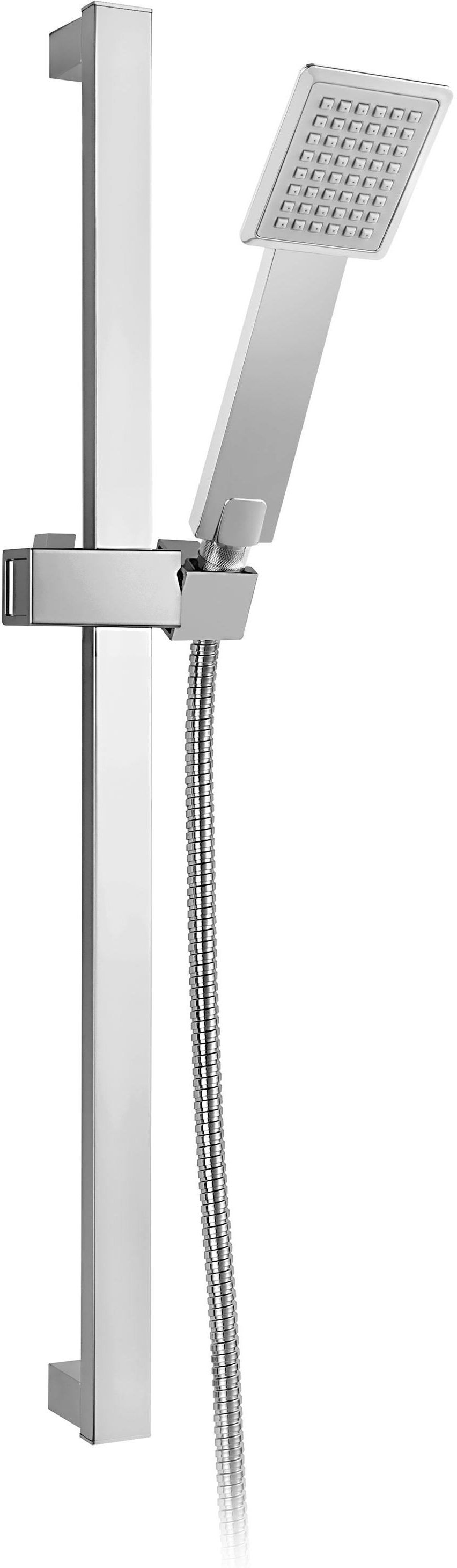 Natrysk przesuwny 1-funkcyjny SINUS Modny, prostokątny dizajn świetnie wpisuje się w aktualne trendy. Regulowany uchwyt natrysku zapewni każdemu użytkownikowi możliwość dopasowania pozycji rączki do swojego wzrostu. W komplecie trwały wąż natryskowy o długości 150 cm w oplocie metalowym. Rączka natrysku posiada Ferro Easy Clean System, dzięki któremu łatwo usuniemy z niej osad wapienny. Dane techniczne Materiał rączki natryskowej: ABS Ilość strumieni rączki natryskowej: 1 Typy strumienia: deszcz Materiał węża natryskowego: w oplocie z mosiądzu Długość węża natryskowego [mm]: 1500 Easy Clean System: tak Regulowany uchwyt natrysku: tak Rozstaw mocowań drążka [mm]: 623 Wysokość drążka [mm]: 655 Klasa przepływu: ZZ W zestawie: rączka natryskowa, drążek, uchwyt natrysku, wąż natryskowy Wykończenie: chrom