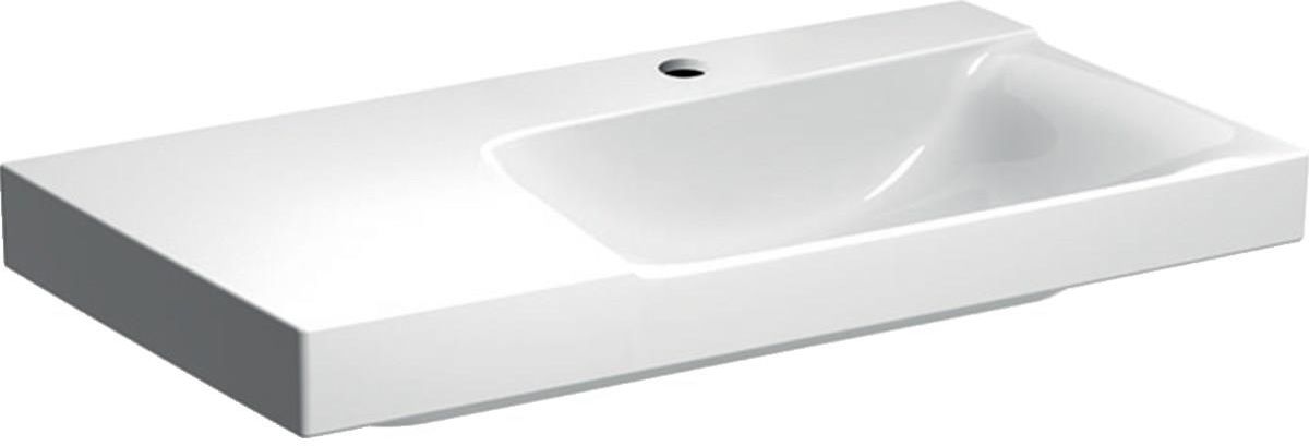 Geberit Xeno² umywalka z powierzchnią odkładczą Materiał: ceramika sanitarna możliwość osadzenia w blacie asymetryczna z powierzchnią odkładczą Wymiary: : B: 90 cm H: 14 cm T: 48 cm Dane techniczne otwór na baterię na środku bez przelewu powierzchnia odkłacza po lewej stronie Geberit Xeno² …