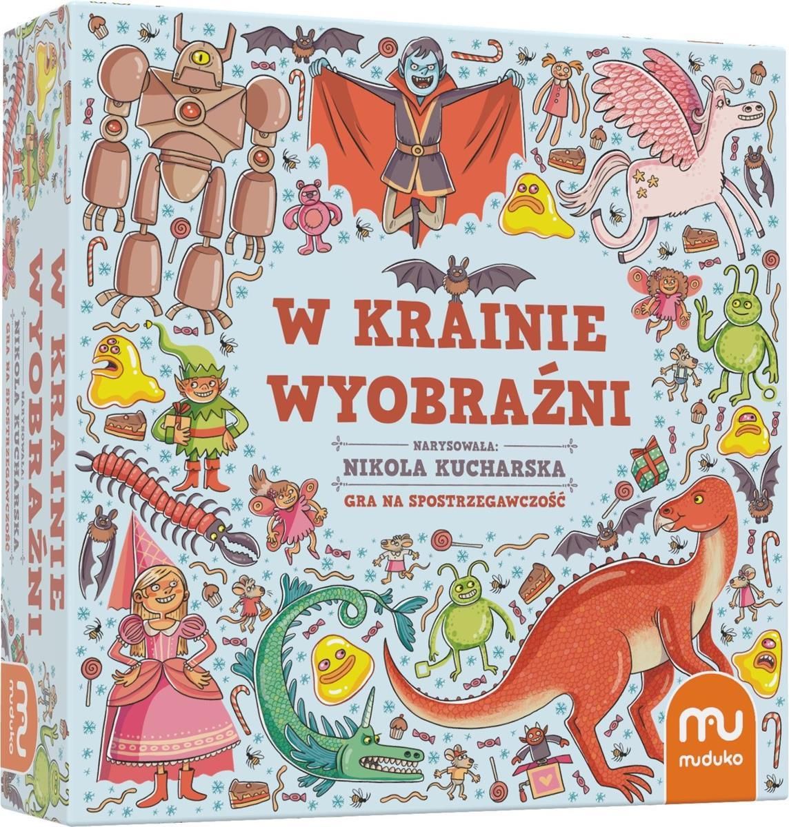 Gra W Krainie Wyobraźni na Spostrzegawczość Rodzinna Edukacyjna Prezent 5+ W Krainie Wyobraźni – rodzinna gra na spostrzegawczość Producent: Muduko Ilustracje: Nikola Kucharska Wiek: 5+ Liczba graczy: 1–18 Czas rozgrywki: ok. 15 minut Wymiary pudełka: 24 × 24 × 7 cm Wejdź do świata wyobraźni i …