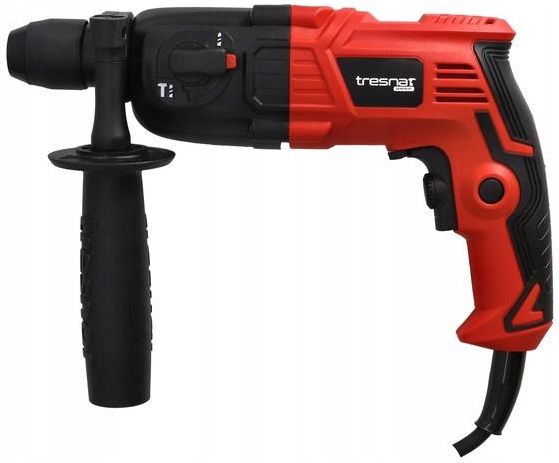 TRESNAR TPWSDP42012 MŁOTOWIERTARKA SDS+ 420W Opis produktu: Narzędzie przeznaczone jest do wiercenia bez udaru w drewnie, metalu i tworzywach sztucznych oraz wiercenia z udarem w betonie, cegle, kamieniu. Zastosowany udar elektropneumatyczny pozwala na osiągniecie znacznie większych wydajności wiercenia w betonie w porównaniu do zwykłych wiertarek udarowych. Elektronarzędzie przystosowane jest do mocowania narzędzi roboczych z chwytem wykonanym w standardzie SDS+. Dane techniczne: Napięcie: 230v~/50hz Pobór mocy: 420w Prędkość obrotowa bez obciążenia: 0-1500min-1 Częstotliwość udaru: 0-6680min-1 Energia udaru: 1,2j Maksymalna średnica wiercenia: stal: ø12mm Beton: ø13mm Drewno: ø20mm Waga: 1,6 kg W zestawie: Urządzenie