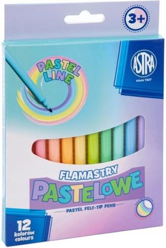 Flamastry szkolne 12 kolorów pastelowych firmy Astra To kolejny element wyposażenia każdego przedszkolaka i ucznia ! Zestaw flamastrów szkolnych Astra zawiera 12 cudnych, pastelowych kolorów wypełnionych tuszem wysokiej jakości, który zapewnia żywe i piękne kolory a co ważne tusz nie zawiera …