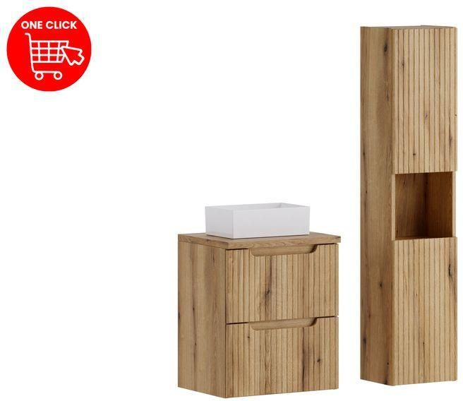 Comad Zestaw meblowy 50cm z blatem, umywalka nablatową Gaja i szafką wysoką Nova Coast Evoke (SET-NOCE B OAK 50CM S UN GAJA HC) Czarne