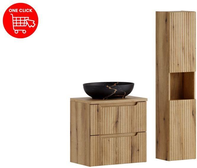 Comad Zestaw meblowy 60cm z blatem, umywalką nablatową Mona i szafką wysoką Nova Coast Evoke (SET-NOCE B OAK 60CM S UN MONA HC) Czarne