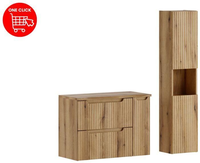Comad Zestaw meblowy 80cm z blatem i Szafką wysoką Nova Coast Evoke (SET-NOCE B NAT OAK 80CM S HC) Czarne
