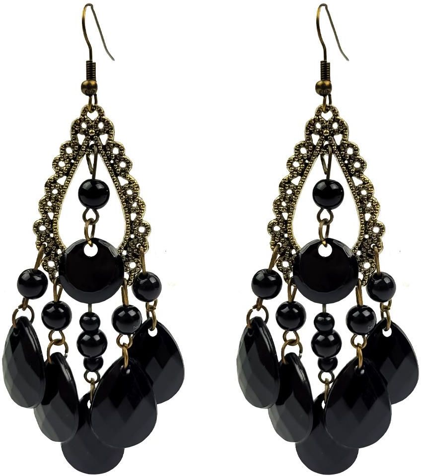 Kolczyki złote z czarnymi kamykami. Idealne na imprezę w stylu retro, disco, lat 20'tych. Opakowanie: 1 para.