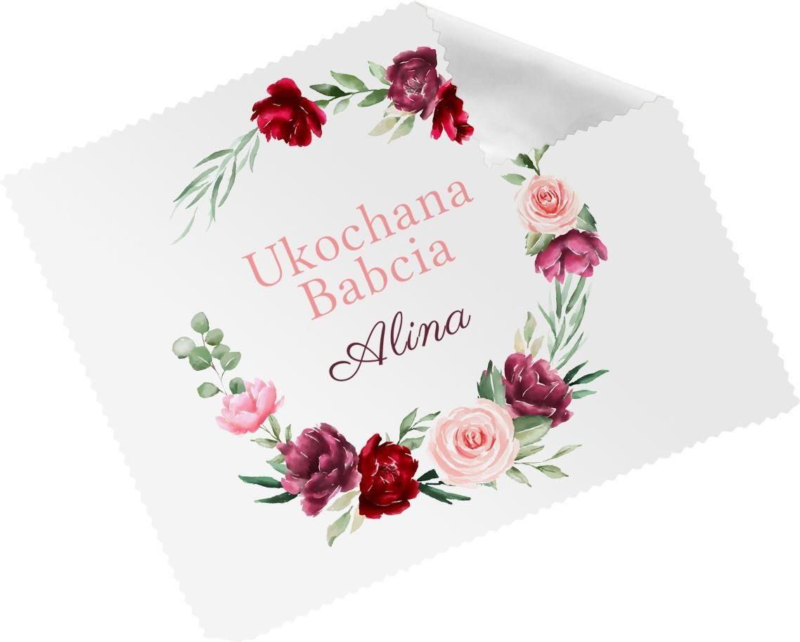 Ściereczka z białej mikrofibry do okularów z personalizacją dla babci na dzień babci. Prosimy podać imię jakie ma być umieszczone na ściereczce. Wymiary: 10 x 15 cm. Dane do ściereczki prosimy podawać w notatce do zamówienia.