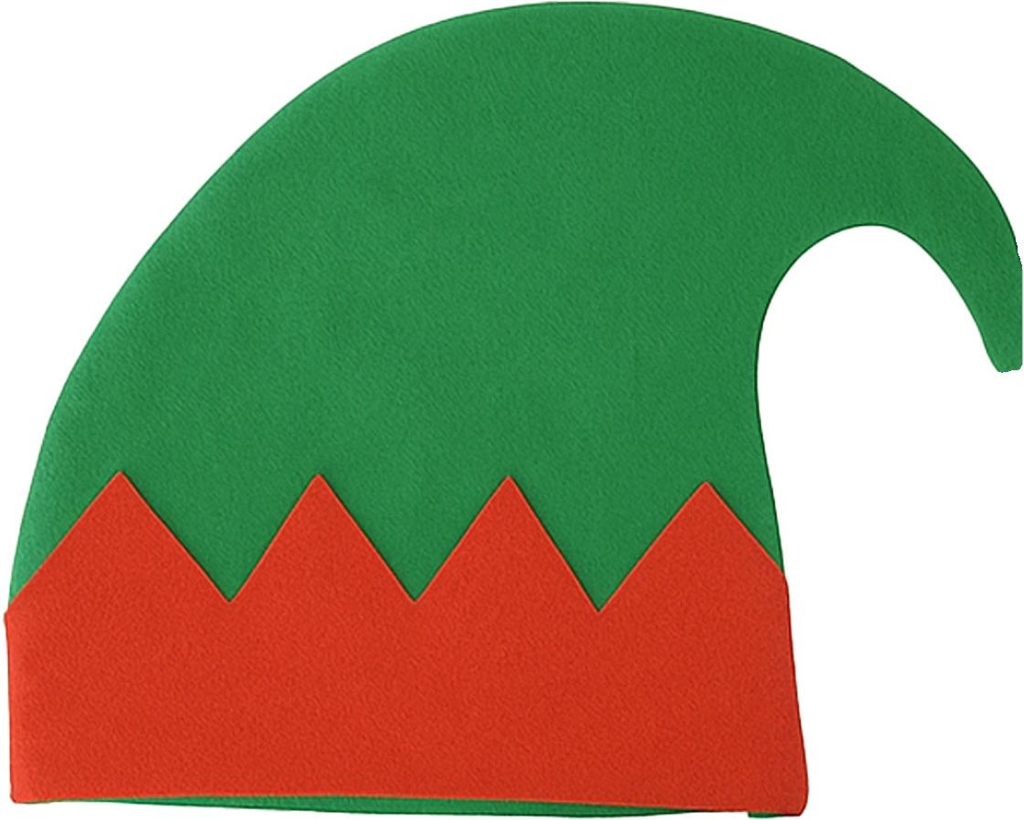 Filcowa czapka Elfa w kolorze zielonym i czerwonym, idealna do stroju na święta Bożego Narodzenia. Wymiary: 36x30 cm. Średnica otworu na głowę ok.56 cm. Opakowanie: 1 szt.