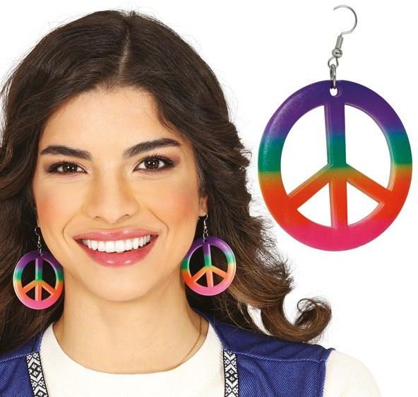 Kolczyki hipiski w kształcie pacyfek. Produkt wielokolorowy( różowy, pomarańczowy, zielony i fioletowy). Kolczyki idealnie będą pasowały do stroju hippie. Wielkość: średnica 4,5 cm. Materiał plastik.