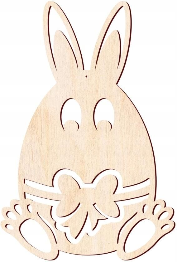 Jajko-Zajączek Wielkanocny z drewna. Dekoracja z drewna, która świetnie nada się do malowania farbami czy nawet kredkami. Dekoracje można zawiesić na ścianie lub wykorzystać w inny pomysłowy sposób. Materiał: sklejka. Kolor: naturalny. Wymiary: 57x38 cm.