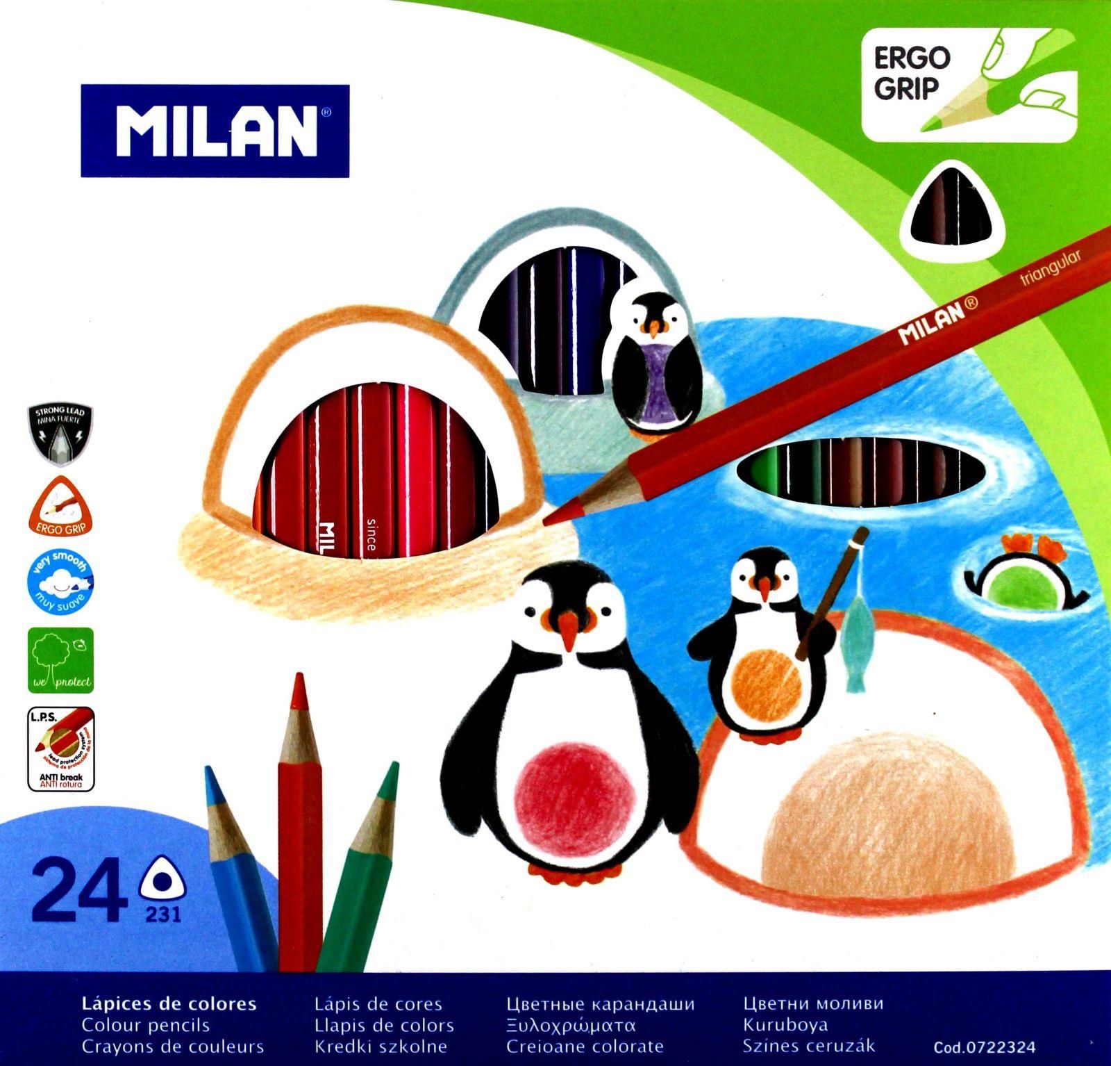 Trójkątne kredki ołówkowe- 24 kolory firmy Milan Trójkątny kształt to wygodny i prawidłowy uchwyt szczególnie ważny dla tych najmłodszych użytkowników. O wysokiej jakości pigmenty w żywych, nasyconych kolorach są odporne na działanie UV. Miękki grafit to wygoda w kolorowaniu czy rysowaniu. Kredki …