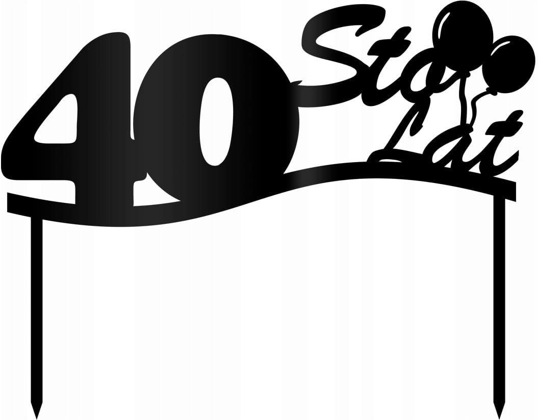 Topper z liczbą 40 i napisem sto lat, idealna dekoracja tortu na 40 urodziny. Rozmiar: 19x15 cm. Opakowanie: 1 szt. Kolor: czarny poysk. Materiał: pleksiglas, bardzo mocny i wytrzymały. Materiał posiada certyfikat do kontaktu z żywnością.