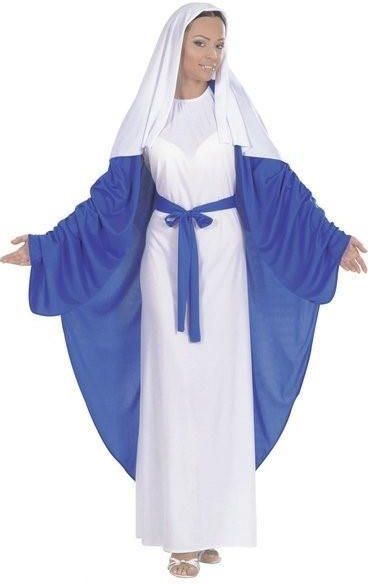 STRÓJ MARYJA XL Zestaw zawiera: sukienkę, chustę, pasek. Profesjonalny kostium Matki Jezusa. Oryginalny i niepowtarzalny. Strój na Jasełka. Sukienka wykonana z wysokiej jakości materiału w kolorze białym z niebieskimi rozszerzanymi rękawami połączonymi z peleryną. Jako dopełnienie stroju na głowę zakłada się chustkę w kolorze białym. Do sukienki dołączona jest niebieska szarfa, którą wiąże się w pasie. Materiał użyty do szycia stroju przypomina bawełnę. Strój elegancki, bardzo estetycznie wykonany. Na pozostałych naszych aukcjach oferujemy: szeroki wybór strojów na jasełka, maski zwierzęce i inne akcesoria. Strój Marii Maryi Maryja matki jasełka