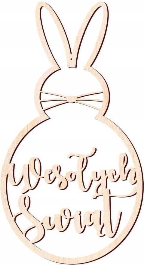 Królik Wielkanocny z drewna. Dekoracja z drewna, która świetnie nada się do malowania farbami czy nawet kredkami. Dekoracje można zawiesić na ścianie lub wykorzystać w inny pomysłowy sposób. Materiał: sklejka. Kolor: naturalny. Wymiary: 31x58 cm.