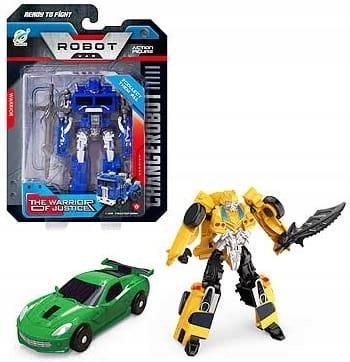 Robot transformer samochód do przekształcania przeznaczony jest dla chłopców od lat 4. Robota można przekształcić w samochód Wysokość robota to około 22 cm. Wymiary opakowania: -długość 24 cm, wysokość 28 cm