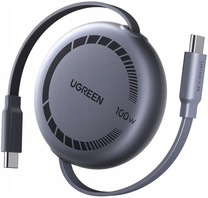 Ugreen L531 Zwijany Kabel USB-C Do USB-C 100W PD 1m Szybkie Ładowanie Ugreen L531 to praktyczny zwijany kabel, który łączy wysoką moc ładowania z mobilnością i wygodą użytkowania. Dzięki obsłudze technologii PD o mocy do 100 W bez problemu naładujesz laptopy, tablety, telefony i wiele innych urządzeń. Specyfikacja Producent: Ugreen Model: L531 Kod producenta: 65905 Złącza: USB-C do USB-C Moc ładowania: 100 W (20 V / 5 A) Szybkość transferu danych: 480 Mbps Długość: 1 m Kolor: Szary Zalety Moc ładowania 100W (PD 20V/5A) – umożliwia szybkie i bezpieczne zasilanie laptopów, tabletów, smartfonów i konsol. Zwijany mechanizm z 4 długościami – pozwala idealnie dopasować długość kabla i eliminuje plątanie przewodów w torbie czy aucie. Wbudowany chip E-Marker – inteligentnie dostosowuje parametry ładowania i chroni sprzęt przed przegrzaniem, przepięciem i przeciążeniem. Trwała konstrukcja – przetestowany na ponad 10 000 podłączeń, odporny na zginanie i codzienne użytkowanie. Uniwersalna kompatybilność – działa z ponad 1000 urządzeń wyposażonych w port USB-C, zapewniając stabilne ładowanie i transfer danych 480 Mbps. Zwijana konstrukcja Wbudowany mechanizm zwijania z 4 ustawieniami długości pozwala dopasować przewód do swoich potrzeb. Masz dość splątanych przewodów? Wystarczy jeden ruch, aby kabel schować w praktycznej obudowie, co ułatwia transport i przechowywanie. Inteligentne i bezpieczne ładowanie Wbudowany chip E-Marker automatycznie wykrywa podłączone urządzenie i dostarcza optymalny prąd. Dzięki temu możesz korzystać z szybkiego ładowania, mając pewność ochrony przed przegrzaniem, przeciążeniem i nagłymi skokami napięcia. Trwałość na lata Kabel został przetestowany na ponad 10 000 cykli podłączania i odłączania. Wysokiej jakości materiały sprawiają, że Ugreen L531 wyróżnia się wyjątkową wytrzymałością, gwarantując długotrwałe i bezproblemowe użytkowanie. Kompatybilność z wieloma urządzeniami Dzięki obsłudze standardu USB-C kabel współpracuje z ponad 1000 urządzeniami. Bez względu na to, czy korzystasz z laptopa, tabletu, smartfona czy konsoli – zawsze możesz liczyć na stabilne i szybkie ładowanie.