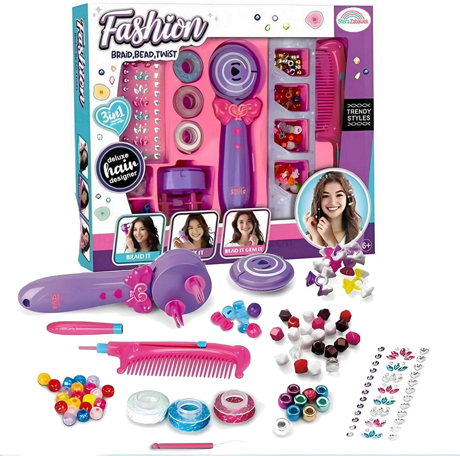 Zaplatarka do włosów zaplatacz studio fryzjerskie maszynka do warkoczyków Zaplatarka do Włosów od marki Sferazabawek – Twórz Magiczne Fryzury Każdego Dnia! Jeśli Twoje dziecko marzy o kreatywnych fryzurach, kolorowych pasmach i błyszczących ozdobach we włosach, to **Zaplatarka do Włosów od marki Sferazabawek** będzie idealnym wyborem! To kompletny zestaw do stylizacji, który pozwoli małym stylistkom na tworzenie wyjątkowych fryzur w domowym zaciszu. Dzięki **automatycznej maszynce do zaplatania**, kolorowym koralikom i niciom, każda fryzura stanie się unikalnym dziełem sztuki. To fantastyczna zabawa, która rozwija kreatywność, zdolności manualne i wyobraźnię! Zaplatarka do włosów od **Sferazabawek** to idealny zestaw dla małych stylistek! Automatyczna maszynka**, kolorowe nici, koraliki i grzebień pozwolą tworzyć wyjątkowe fryzury każdego dnia. Rozwija kreatywność, zdolności manualne i pobudza wyobraźnię. Dlaczego warto wybrać zaplatarkę do włosów od Sferazabawek? Zabawa w salon fryzjerski to nie tylko frajda, ale także sposób na rozwój zdolności manualnych i cierpliwości. Dzięki tej zaplatarce, każda dziewczynka może eksperymentować ze stylizacjami i tworzyć warkoczyki, kolorowe pasma czy błyszczące upięcia bez pomocy dorosłych. Maszynka do zaplatania **jest łatwa w obsłudze, a bogaty zestaw dodatków zapewnia niezliczone możliwości stylizacji**. Co zawiera zestaw? Zaplatarka do włosów od Sferazabawek to kompletny zestaw do tworzenia bajecznych fryzur. Oto, co znajduje się w eleganckim opakowaniu: Automatyczna maszynka do zaplataniaŁatwa w użyciu maszynka, która szybko tworzy równomierne i efektowne warkoczyki.Kolorowe niciMożliwość wplatania kolorowych nici sprawia, że fryzury stają się jeszcze bardziej fantazyjne.Koraliki i ozdobyBogaty wybór koralików w różnych kształtach i kolorach pozwala na personalizację każdej fryzury.Grzebień do nakładania koralikówSpecjalny grzebień ułatwia aplikację ozdób na włosy.Zestaw naklejek na włosyDzięki nim fryzury nabiorą dodatkowego blasku. Zalety zaplatarki do włosów Łatwa w obsłudze – Dzięki automatycznej maszynce każda dziewczynka może sama stworzyć swoją fryzurę. Rozwija kreatywność – Możliwość eksperymentowania z różnymi stylami pobudza wyobraźnię. Bezpieczne materiały – Wszystkie elementy są wykonane z wysokiej jakości, nietoksycznych materiałów. Doskonały prezent – Idealny wybór na urodziny, święta czy inną okazję. Zabawa i nauka w jednym – Tworzenie fryzur ćwiczy zdolności manualne i uczy cierpliwości. Specyfikacja zestawu Minimalny wiek6 lat +Wymiary opakowania30,3 cm x 35,2 cm x 7,1 cmRodzaj elementówMaszynka do zaplatania, kolorowe nici, koraliki, grzebień, naklejkiBezpieczeństwoNietoksyczne materiały, certyfikaty bezpieczeństwa Twórz niepowtarzalne fryzury każdego dnia! Zaplatarka do włosów od **Sferazabawek** to nie tylko zabawa, ale także sposób na kreatywne eksperymentowanie z fryzurami. Każda dziewczynka może stać się małą fryzjerką i stworzyć swój własny, niepowtarzalny styl. Dzięki automatycznej maszynce, kolorowym ozdobom i łatwej aplikacji, codzienna stylizacja włosów stanie się prawdziwą przyjemnością. Podsumowanie Zaplatarka do włosów od **Sferazabawek** to idealny prezent dla każdej dziewczynki, która marzy o pięknych fryzurach. **Łatwa w obsłudze, bogata w akcesoria i w pełni bezpieczna**, zapewnia godziny fantastycznej zabawy. Niezależnie od okazji – urodziny, święta czy zwykły dzień – ten zestaw sprawi, że każda fryzura będzie pełna blasku i kreatywności! Nie czekaj – zamów już dziś i pozwól dziecku odkryć świat wyjątkowych stylizacji!