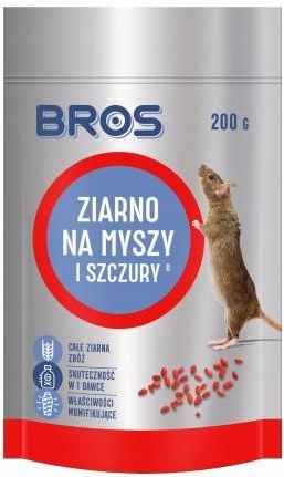 BROS ZIARNO NA MYSZY I SZCZURY - TRUTKA 200G TRUTKA NA MYSZY I SZCZURY W FORMIE ZIARNA O WŁAŚCIWOŚCIACH MUMIFIKUJĄCYCH DO STOSOWANIA WEWNĄTRZ I WOKÓŁ BUDYNKÓW Ziarno do zwalczania myszy i szczurów wewnątrz i wokół budynków. Wykazuje skuteczność już po jednokrotnym spożyciu. Trutka jako bazę wykorzystuje specjalnie dobrane, całe ziarna zbóż, a formą i smakiem zbliżona jest do naturalnego pokarmu gryzoni. Zawiera gorzką substancję bitrex, która zapobiega przypadkowemu spożyciu przez zwierzęta domowe i ludzi. Opóźnione działanie, po 4-5 dniach od podania, powoduje że gryzonie nie kojarzą trutki ze śmiercią innych osobników. Trutka posiada właściwości mumifikujące. Substancja czynna bromadiolon Dawkowanie - jak stosować Ziarno na myszy i szczury Bros? MYSZ DOMOWA - stosować do 50 g co 5-10 metrów kwadratowych SZCZUR WĘDROWNY- stosować do 100 g co 5-10 metrów kwadratowych. Gdzie można stosować trutkę na myszy i szczury Bros? W pomieszczeniach użyteczności publicznej, w magazynach, w garażach, w kurnikach, chlewach i innych budynkach inwentarskich, itp. Zalety Ziarna na myszy i szczury Bros - jak działa trutka? Możliwość stosowania wewnątrz budynków i na zewnątrz, skuteczność już po jednokrotnym spożyciu, opóźnione działanie, właściwości mumifikujące, atrakcyjne dla gryzoni forma i zmak, zbliżone do ich naturalnego pokarmu, substancja zniechęcająca do przypadkowego spożycia przez zwierzęta domowe i ludzi. Zalecenia stosowania Wykładać w miejscach występowania gryzoni: w pobliżu nor, miejsc żerowania na ścieżkach przebiegu. ​Zaleca się co 2-3 dni w przypadku myszy i co 5-7 dni w przypadku szczurów prowadzenie regularnych inspekcji miejsc, gdzie wyłożono trutkę i uzupełniać zjedzoną przynętę oraz wymieniać przynętę uszkodzoną, np. przez wodę. Produktów biobójczych należy używać z zachowaniem środków ostrożności. Przed każdym użyciem należy przeczytać etykietę i informacje dotyczące produktu.