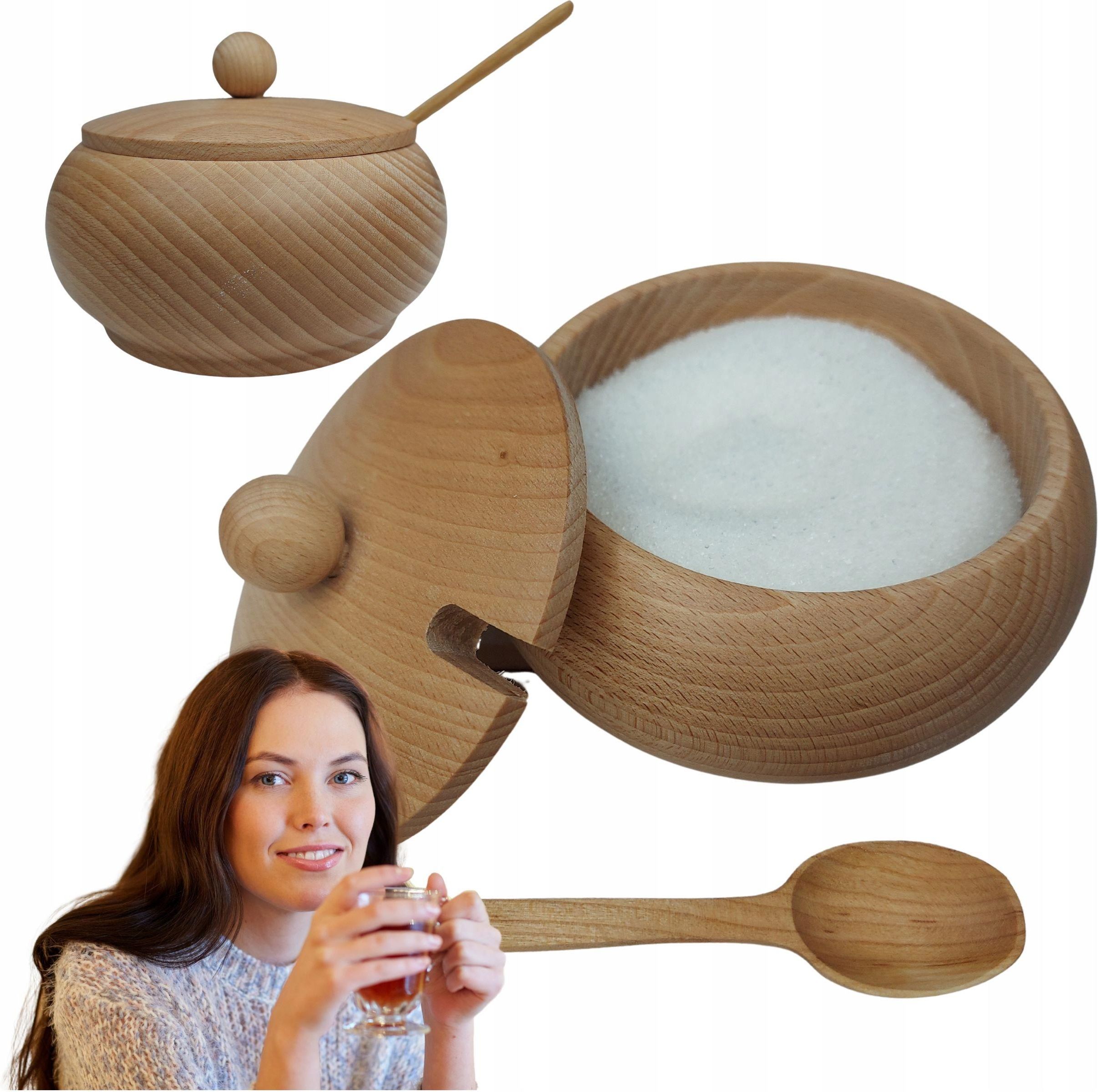 Cukiernica Drewniana Duża Cukierniczka z Pokrywą Łyżeczką 300ml 1754863627 Czchów