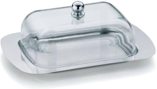 Maselniczka stalowa Kela Baldo 11466 Informacje o produkcie Podstawa jest wykonana ze stali nierdzewnej, Pokrywka z przezroczystego tworzywa sztucznego, Mieści całą kostkę masła, Należy myć ją ręcznie. Wymiary: 18,5 x 12,5 x 7 cm (dł. x gł. x wys.) Materiał: tworzywo sztuczne, stal nierdzewna Kolor: przezroczysty, srebrny