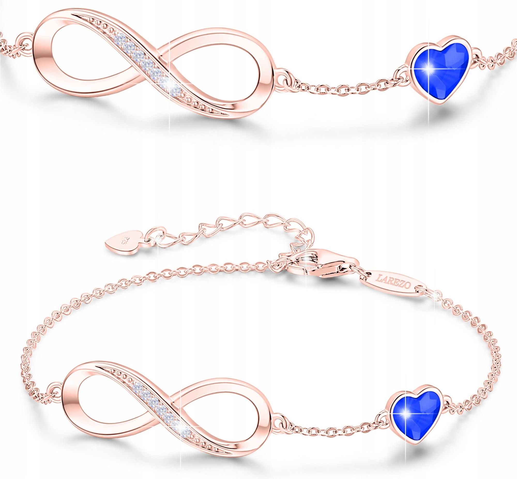 Larezo Bransoletka Srebro Nieskończoność Kryształy i Szafirowe Serce Pozłacana 750 Czchów