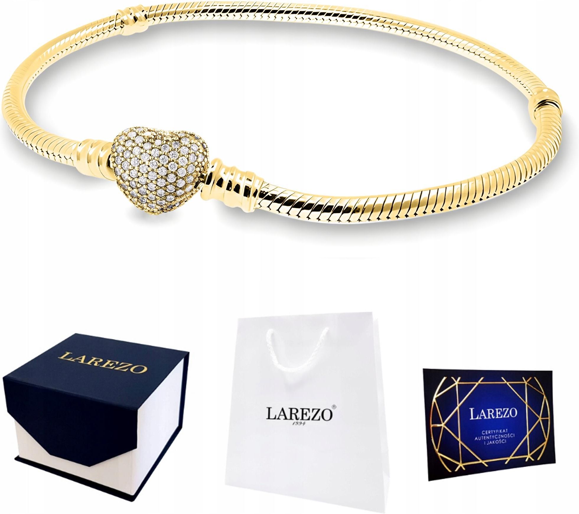 Larezo Bransoletka Złota Modułowa Charms Zawieszka Serce Serduszko Cyrkonie 18cm Czchów