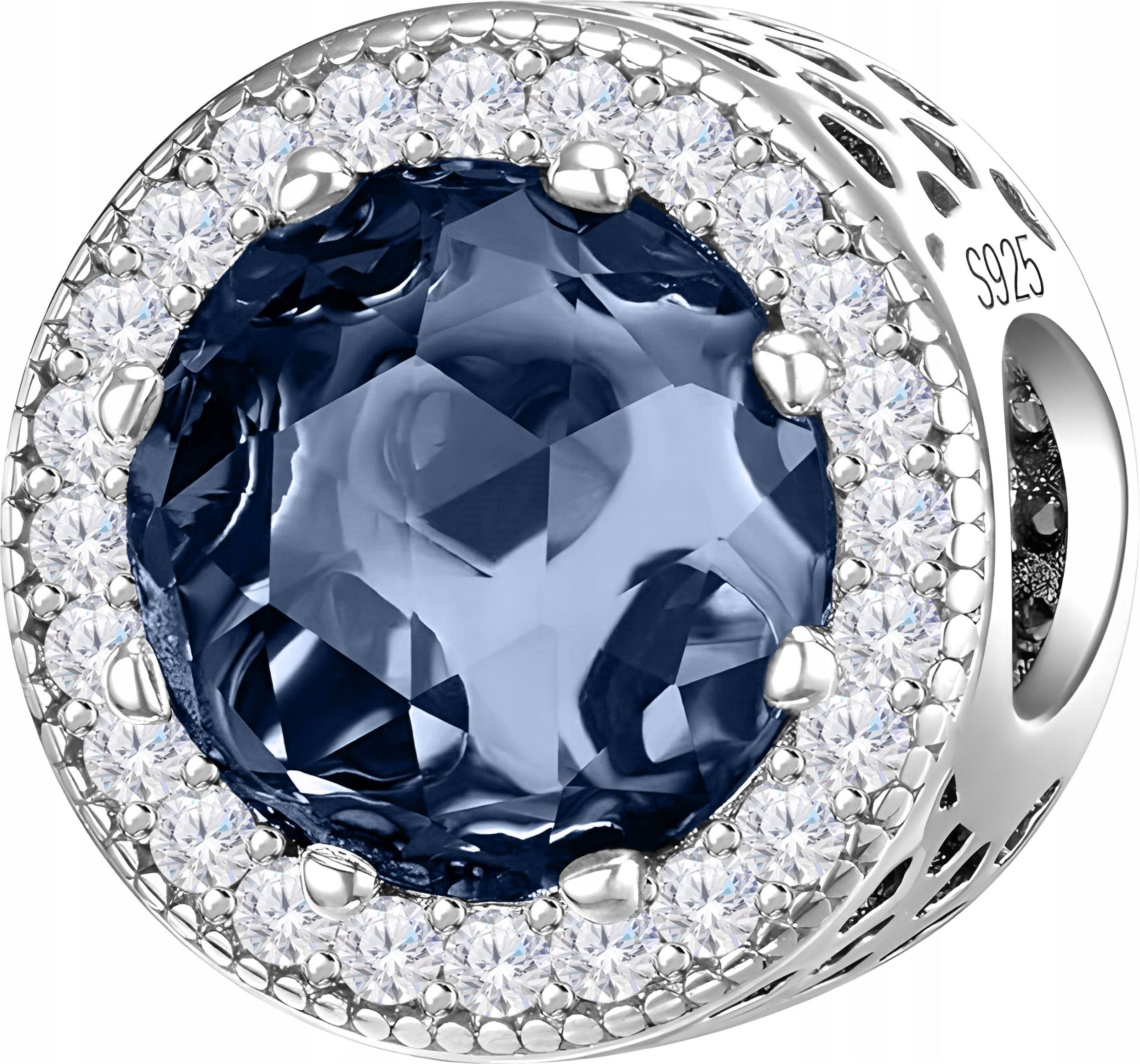 Larezo Charms Koralik Klejnot Cyrkonie Niebieski Kamień Serca Serduszka srebro 925 Czchów