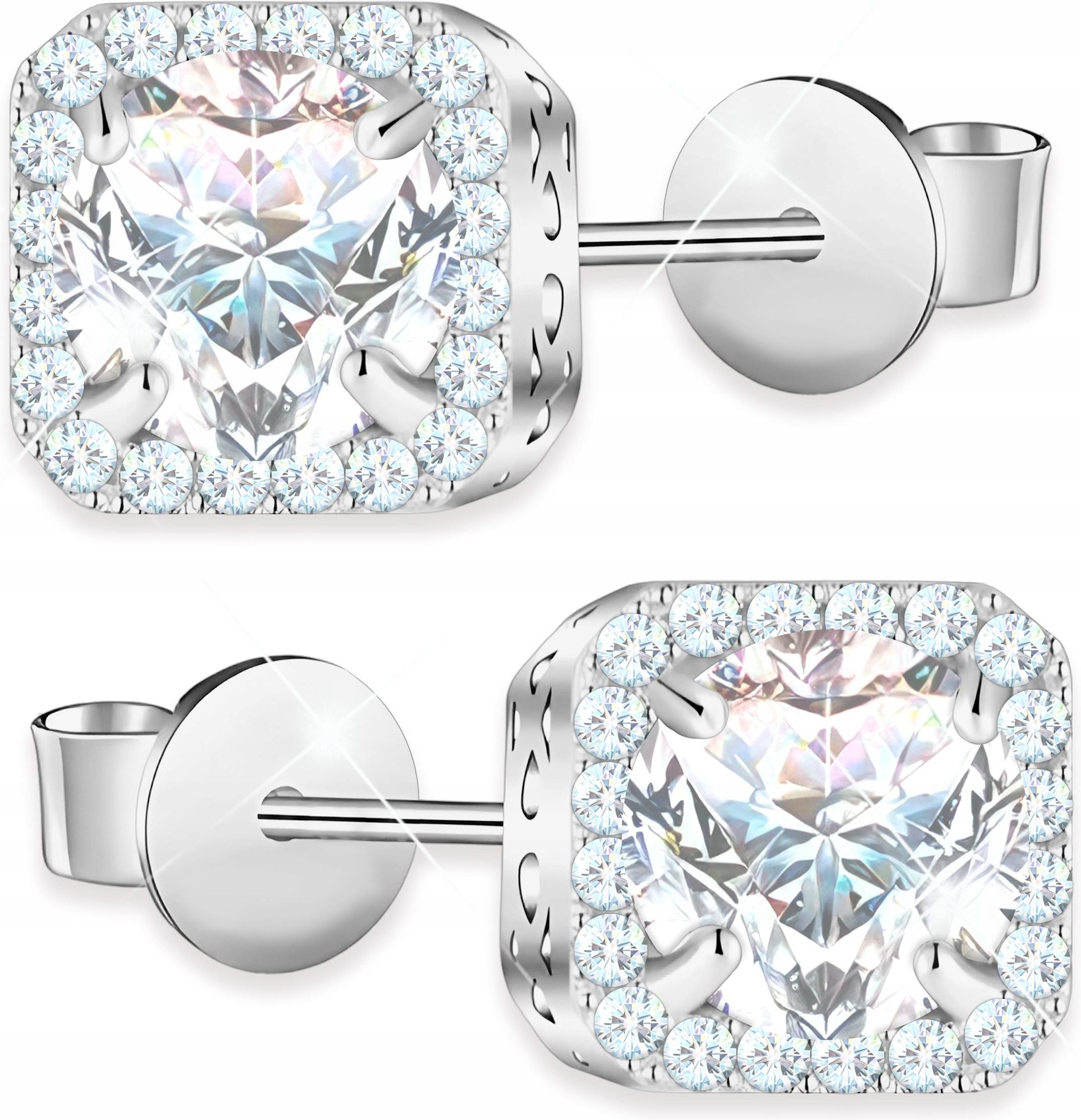 Larezo Kolczyki Srebrne Kwadraty Białe Okrągłe Kryształowe Cyrkonie Srebro 925 Czchów