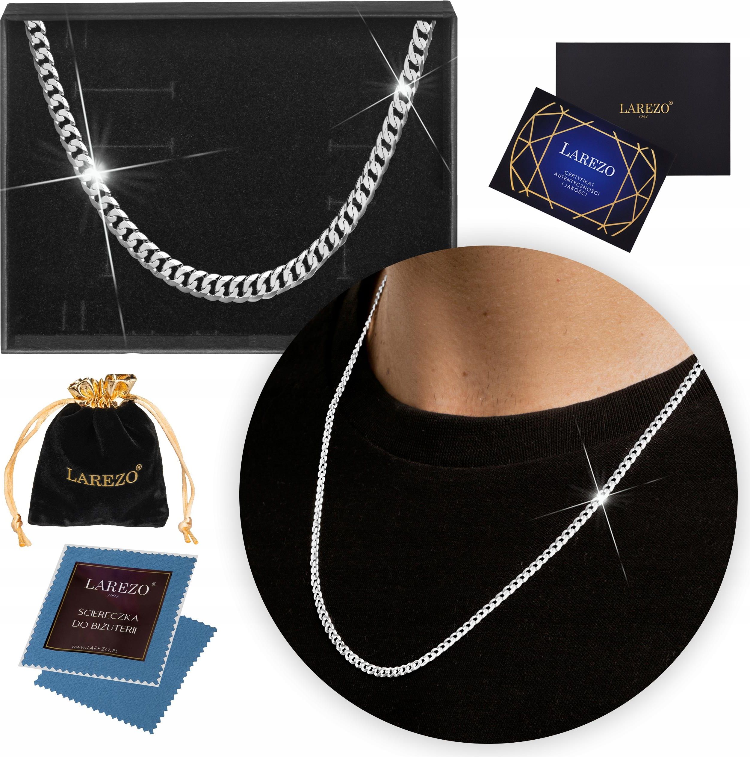 Larezo Łańcuszek Srebrny Męski Długi 60 cm Pełny Mocny Pancerka 3,2 mm Srebro 925 Czchów