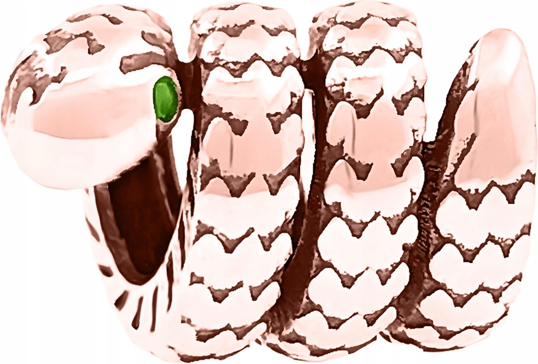 Charms Wąż 🐍 Rodzaj: Zawieszka do bransoletek (CHARMS) 🐍 Płeć: Produkt Damski 🐍 Surowiec: Srebro 🐍 Próba: 925 🐍 Powłoka: Różowe złoto próby 750 (18 Karatów) 🐍 Wymiary zawieszki: Wysokość: 10 mm Szerokość: 14 mm Średnica otworu: 5 mm 🐍 Waga: od 2,3 g do 2,8 g 🐍 Motyw: Zwierzęta 🐍 Cechy: Nie …