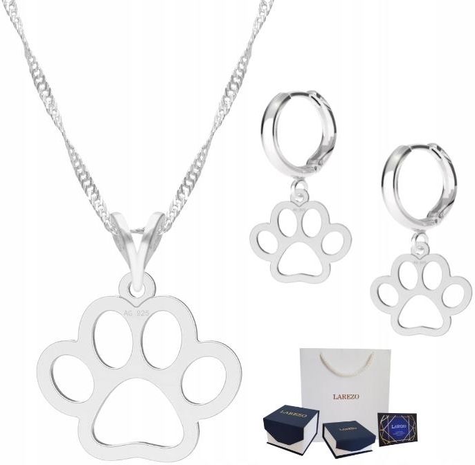 Larezo Naszyjnik + kolczyki psia łapka srebro 925 Zestaw Czchów