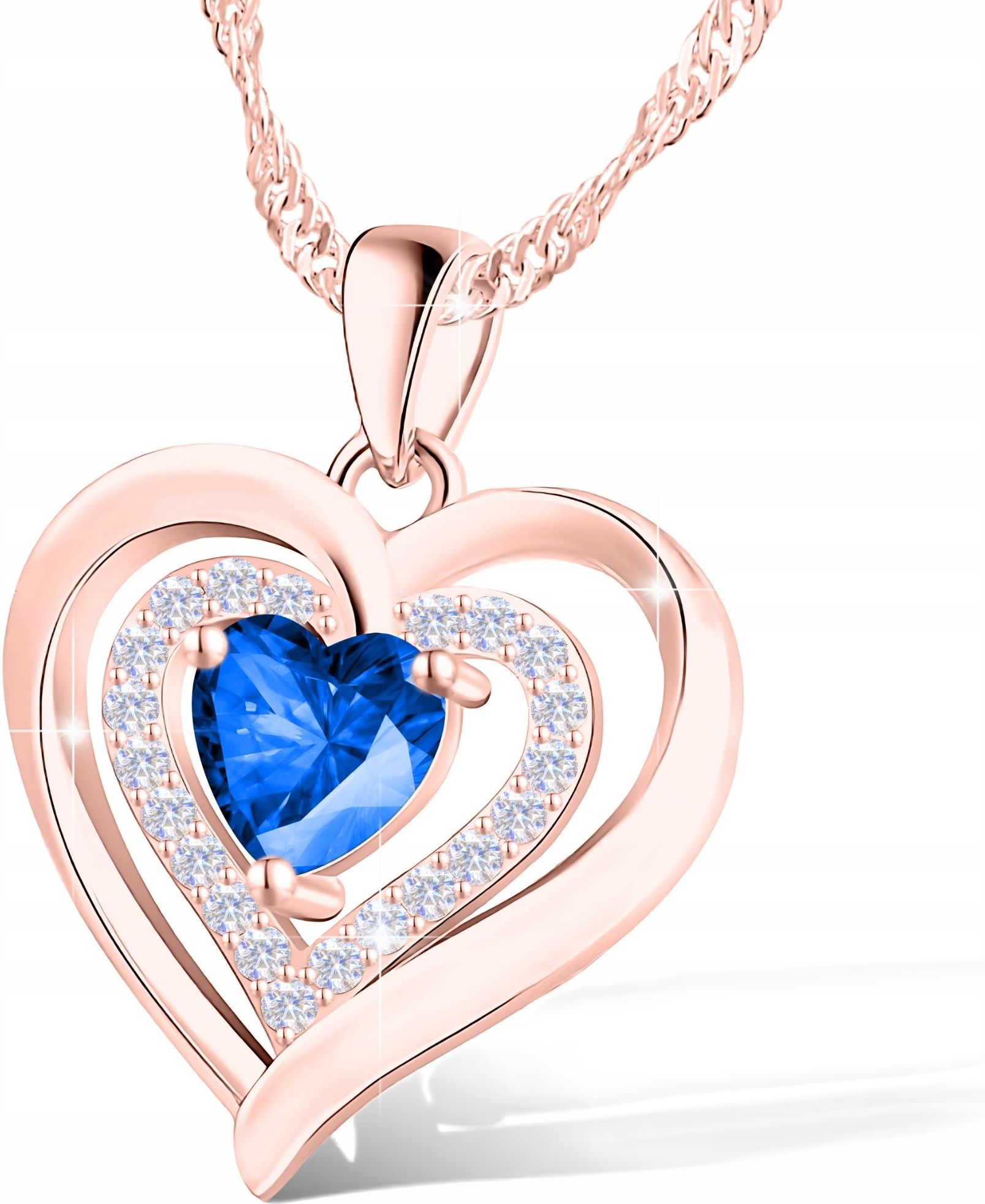Larezo Naszyjnik Kryształowe Niebieskie Serce Srebro 925 Dwa Serca Pozłacany 750 Czchów
