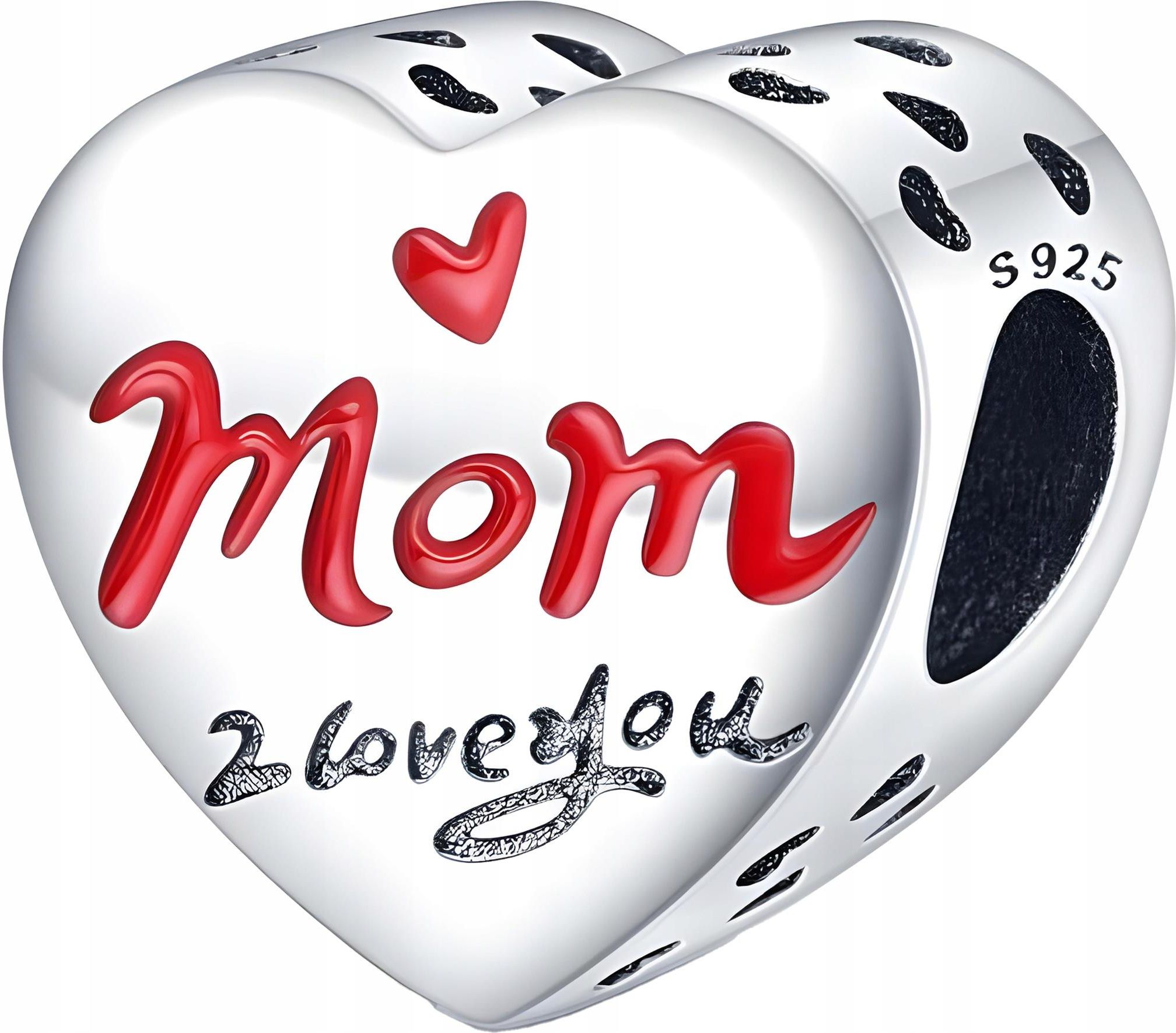 Larezo Srebrny Charms Serce Kocham Cie Mamo Mom I Love You w Sercu srebro 925 Czchów