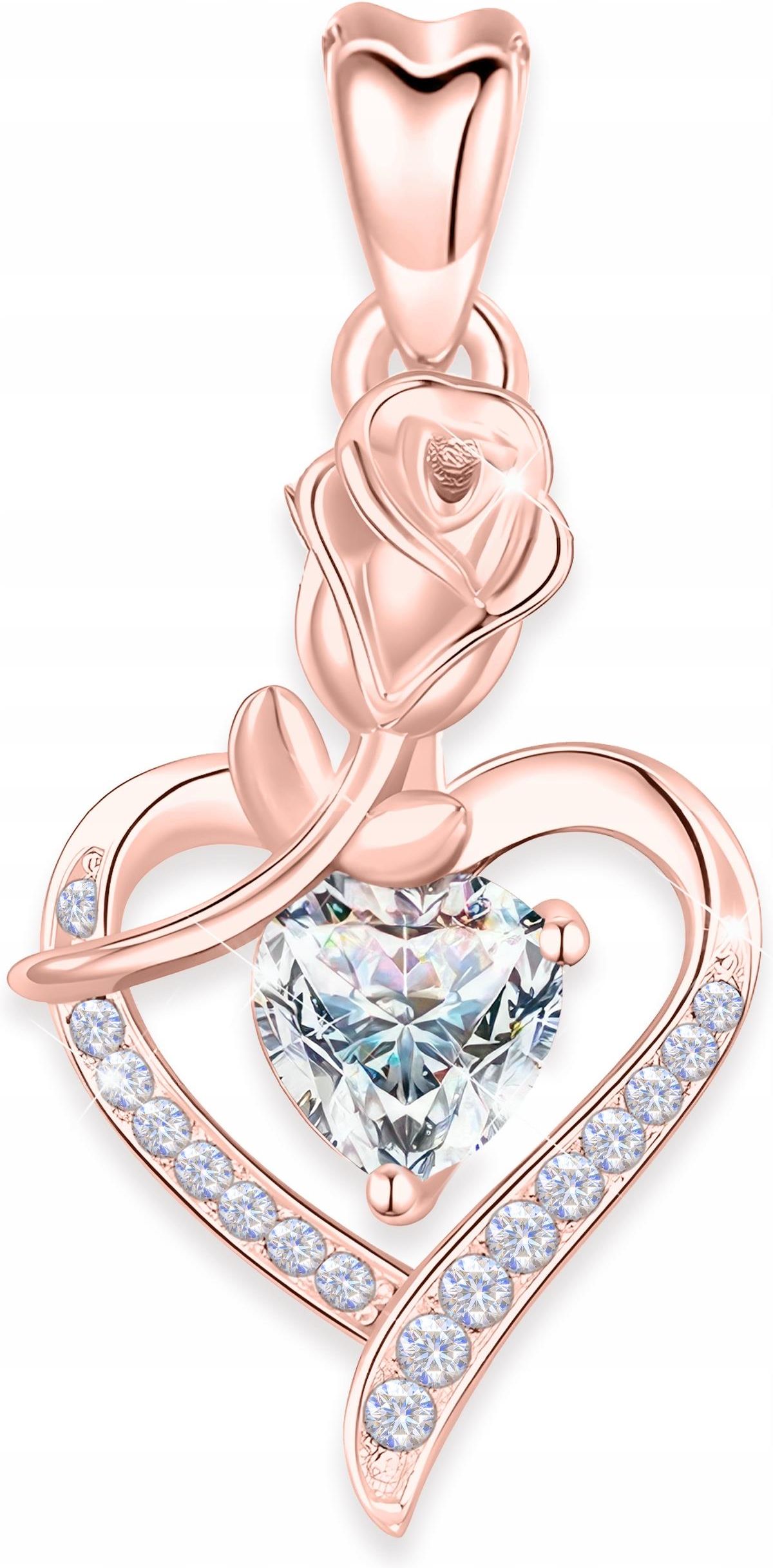 Larezo Zawieszka Do Łańcuszka Pozłacana Biały Kryształ Serce Z Różą Srebro 925 Czchów