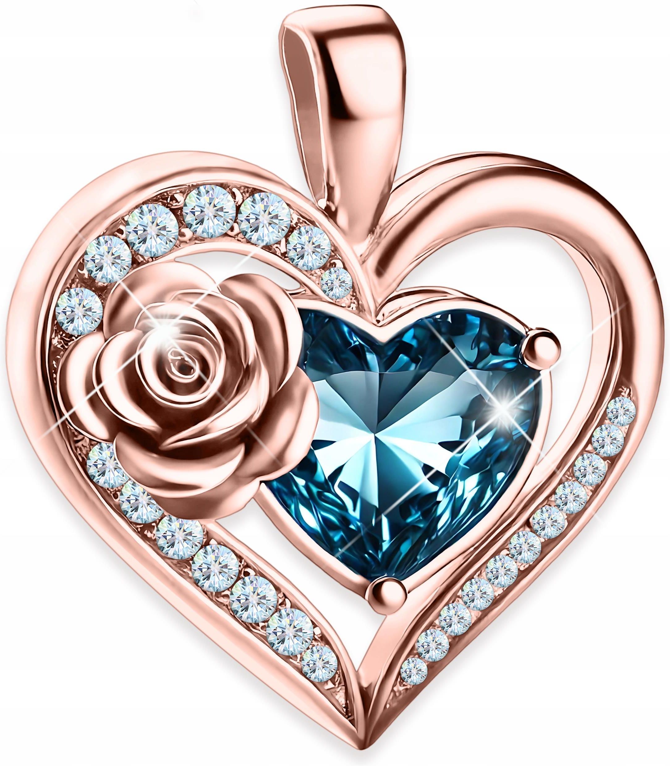 Larezo Zawieszka Do Łańcuszka Pozłacana Niebieskie Kryształowe Serce Z Różą Srebro Czchów