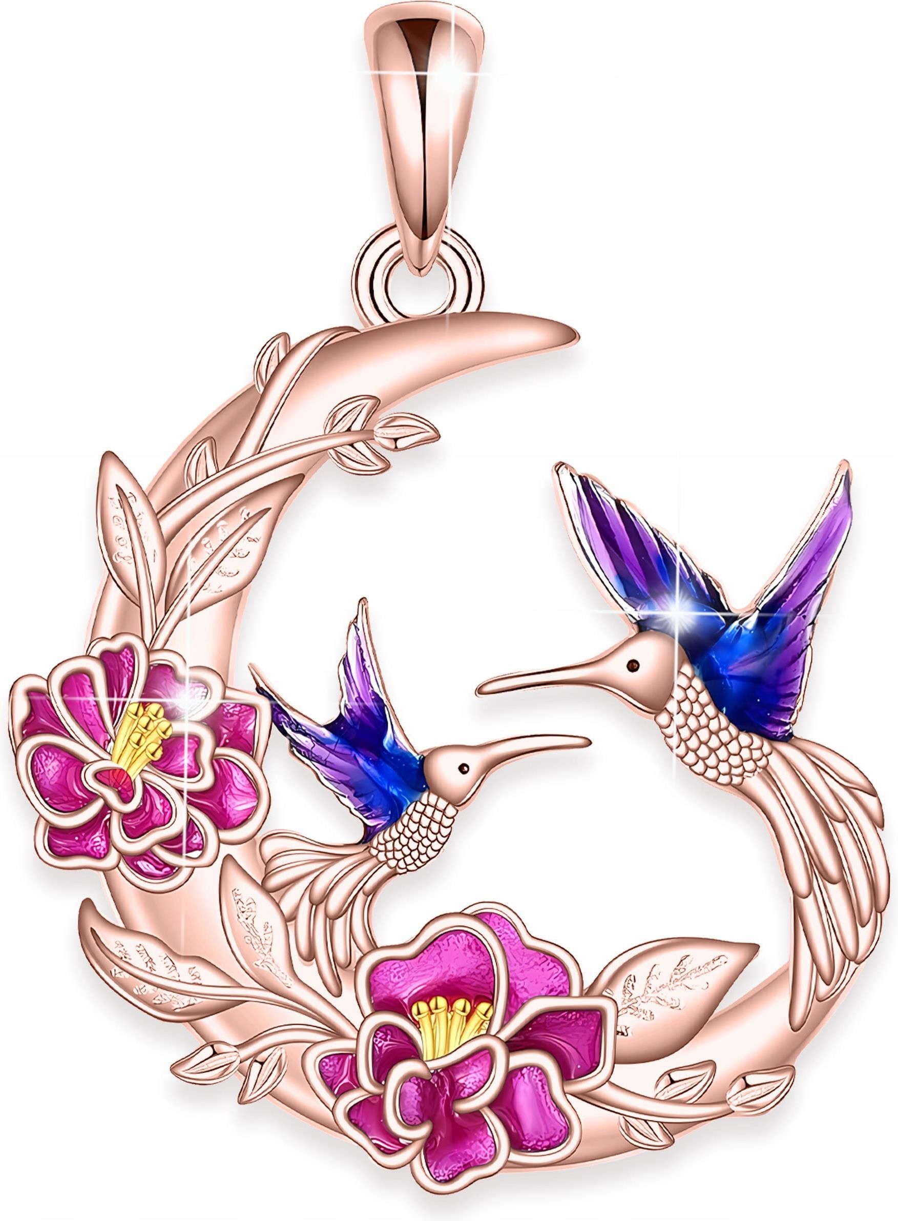 Larezo Zawieszka Do Łańcuszka Pozłacana Półksiężyc Kolibry Kolorowy Kwiat Srebro Czchów
