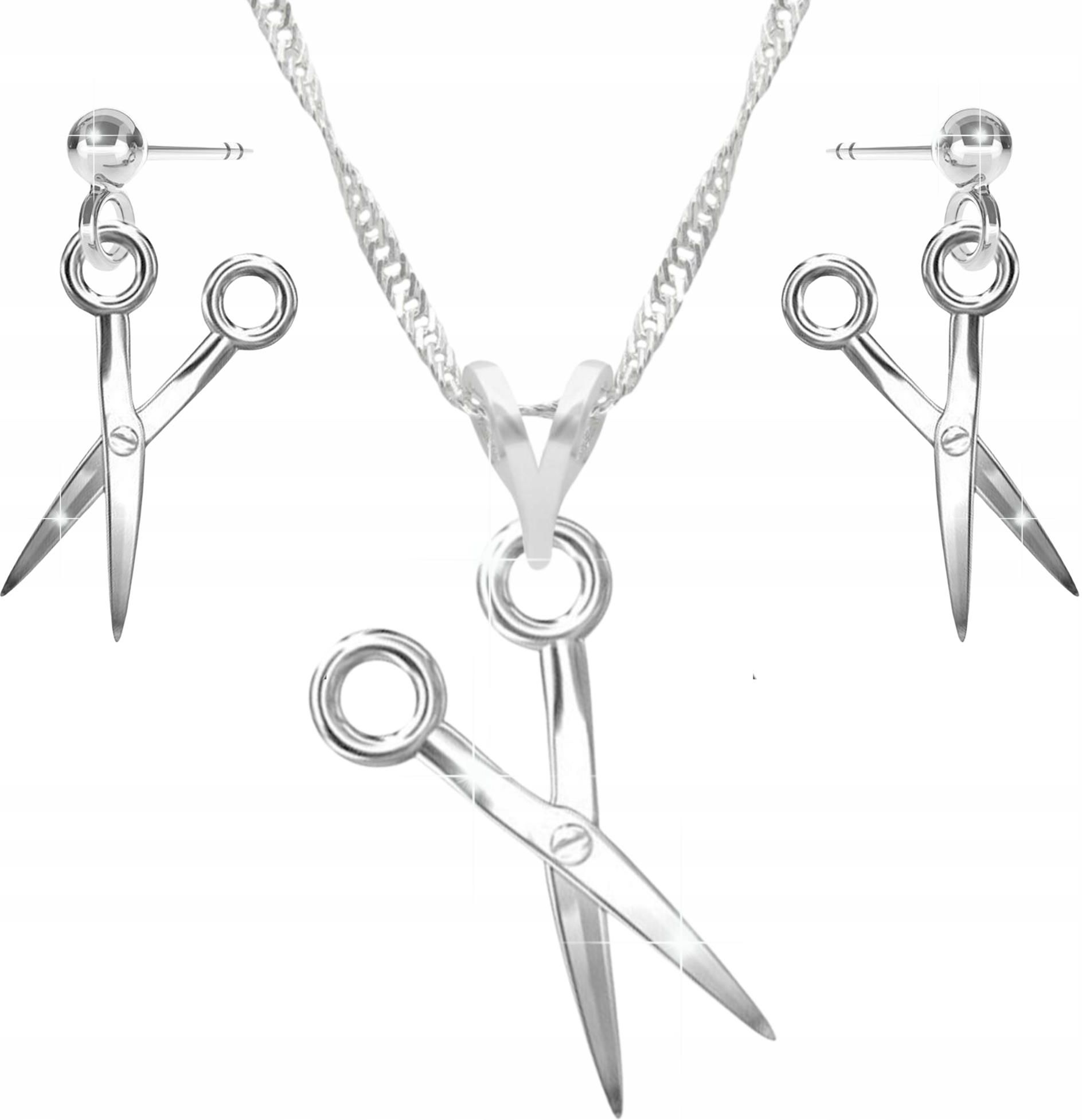 Larezo Zestaw Naszyjnik + Kolczyki na Sztyftcie Srebrne Nożyczki Nożyce srebro 925 Czchów