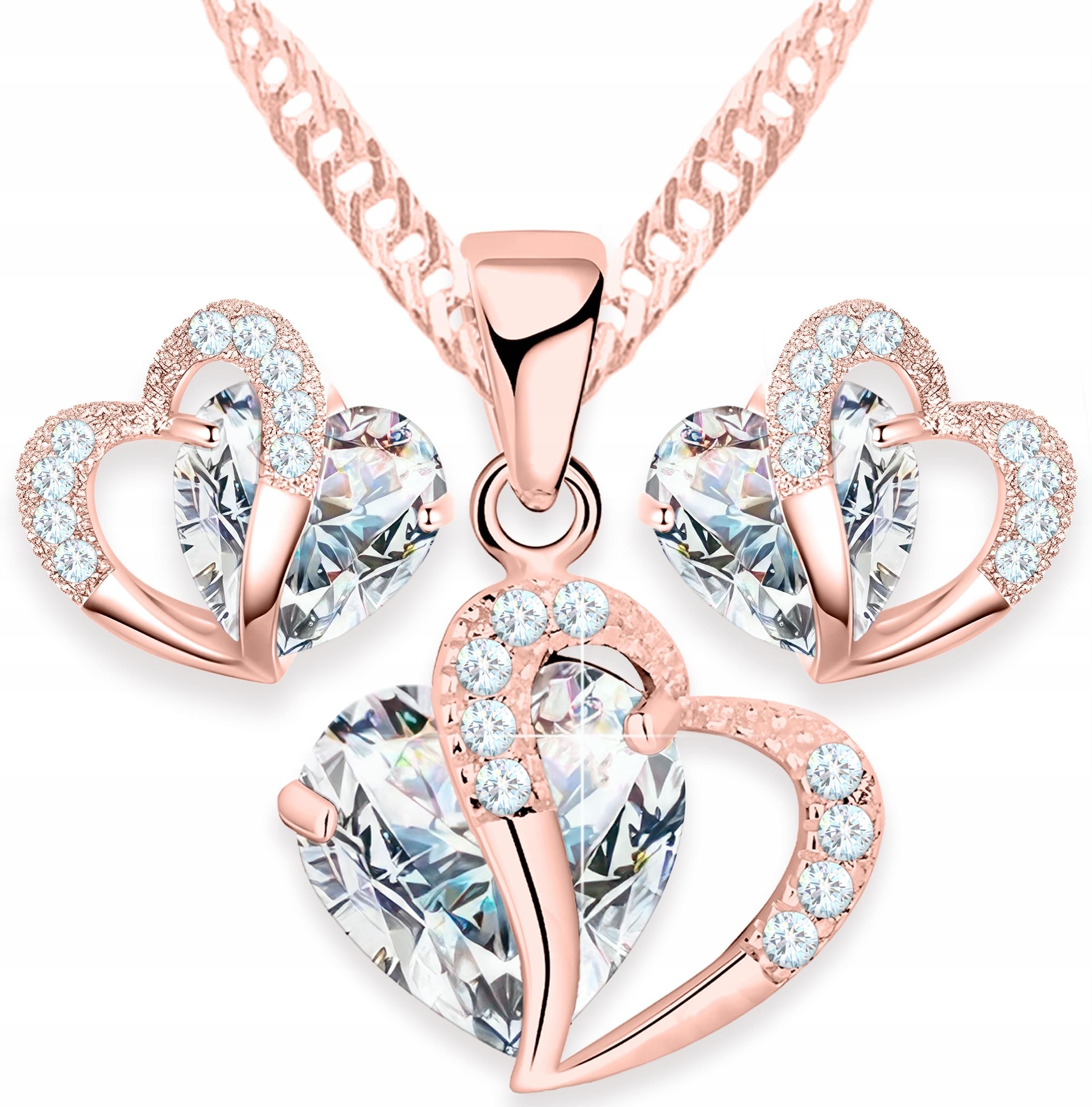 Larezo Zestaw Pozłacany Naszyjnik I Kolczyki Białe Kryształowe Serca Srebro 925 Czchów