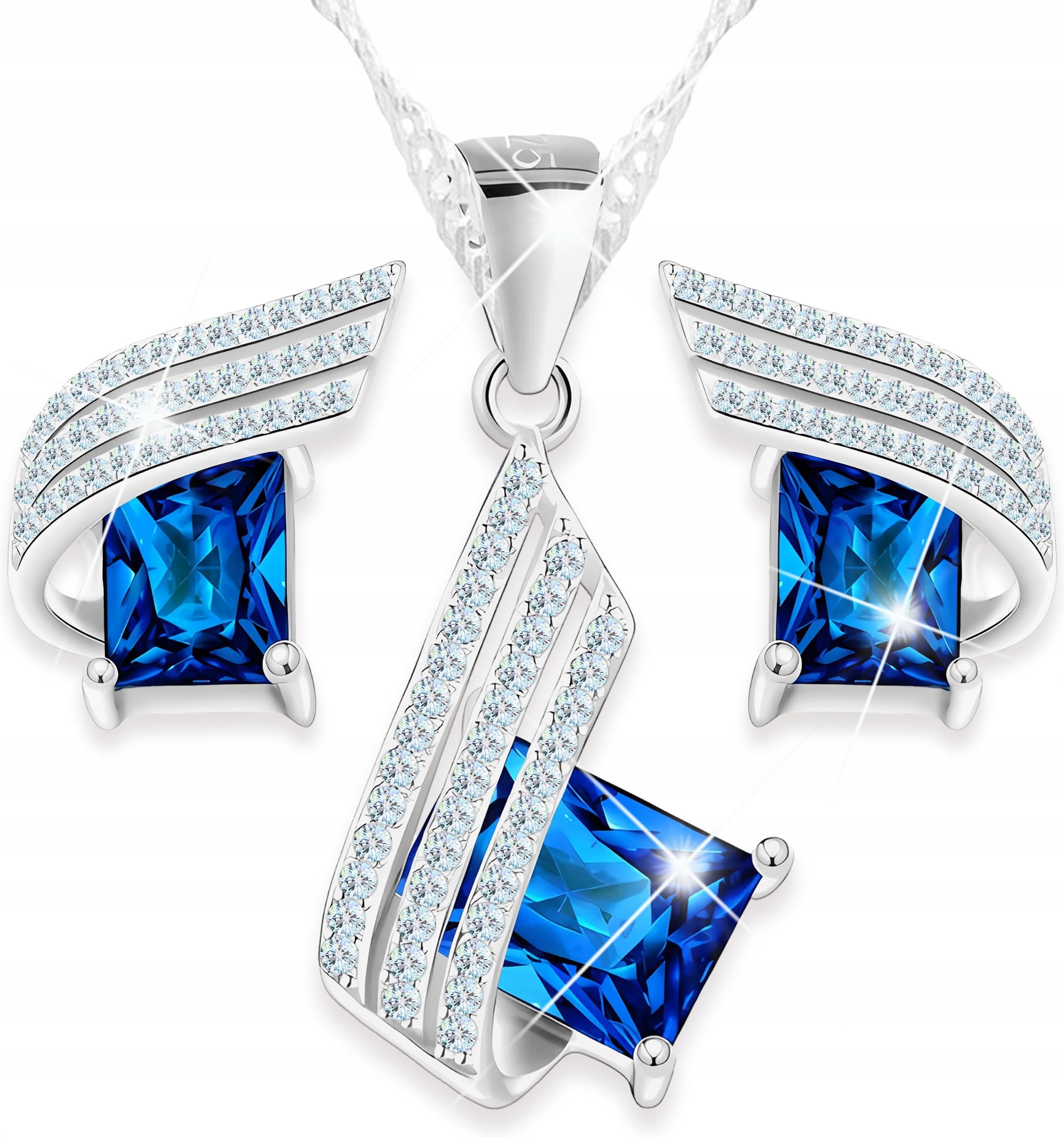 Larezo Zestaw Srebrny Naszyjnik Niebieski Kryształ I Kolczyki Kryształowe 925 Czchów