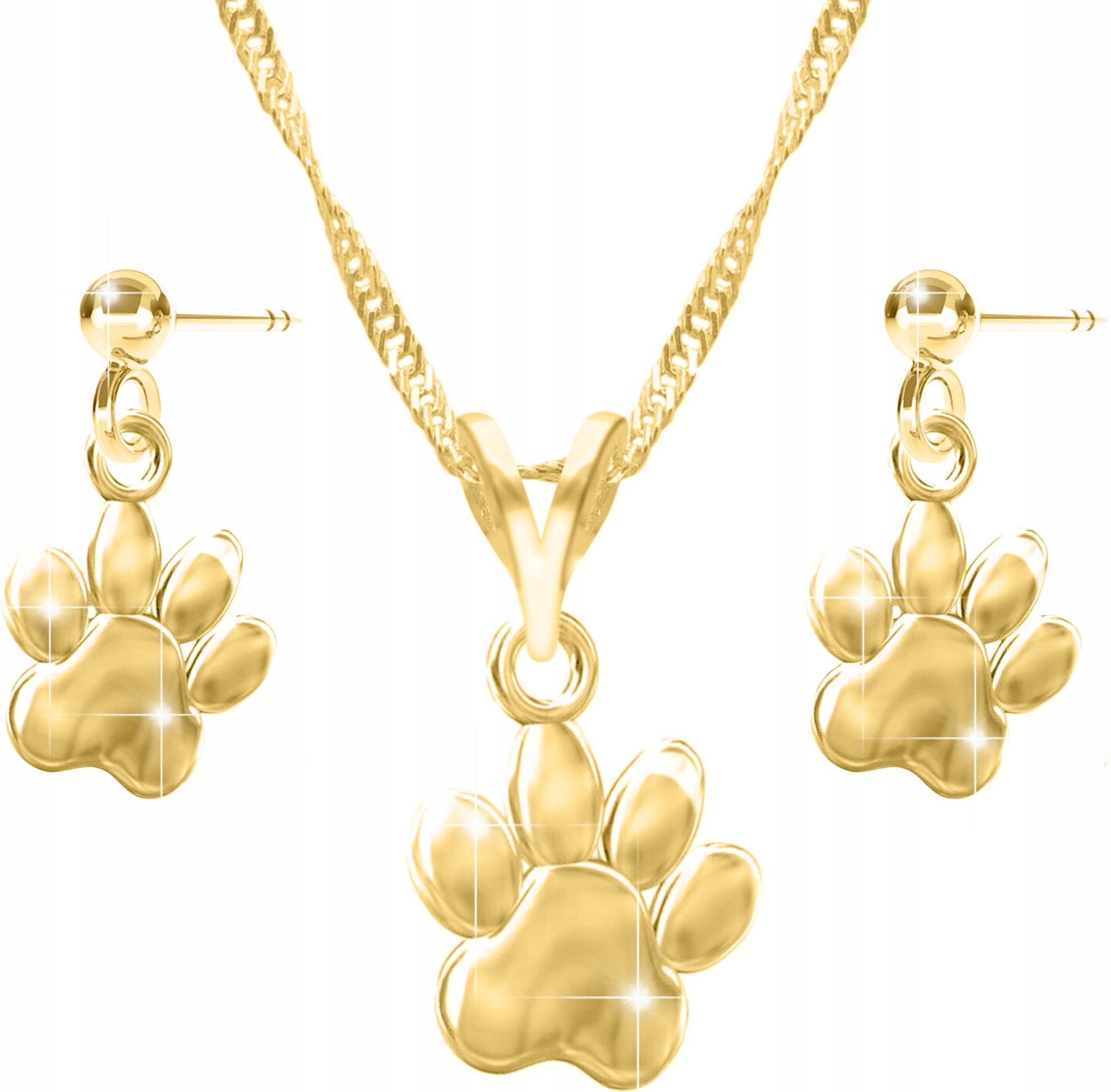 Larezo Zestaw Złoty Naszyjnik + Kolczyki na Sztyft Psia Kocia Łapka Łapki Łapa 925 Czchów