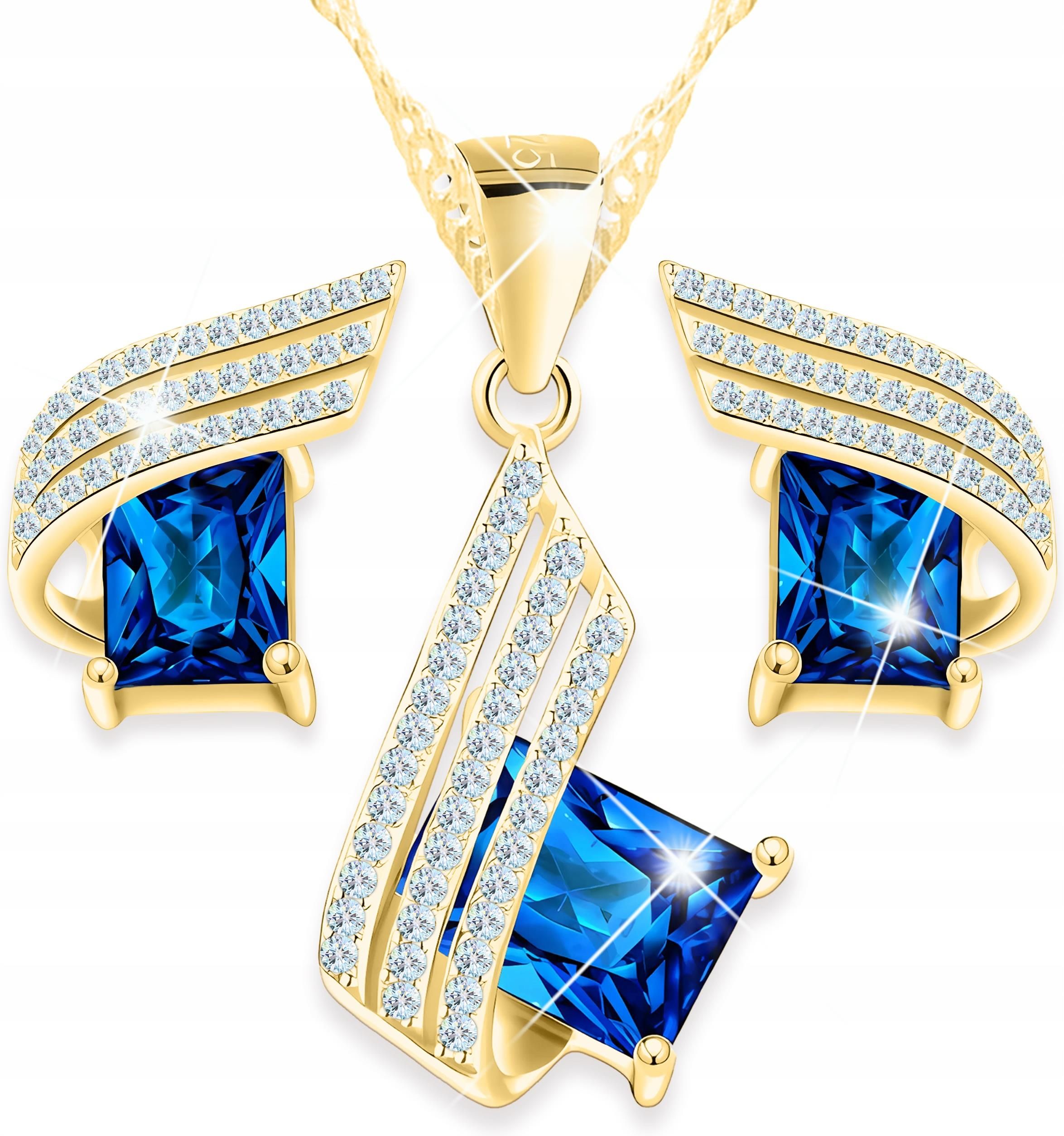 Larezo Zestaw Złoty Naszyjnik Niebieski Kryształ I Kolczyki Kryształowe Srebro 925 Czchów