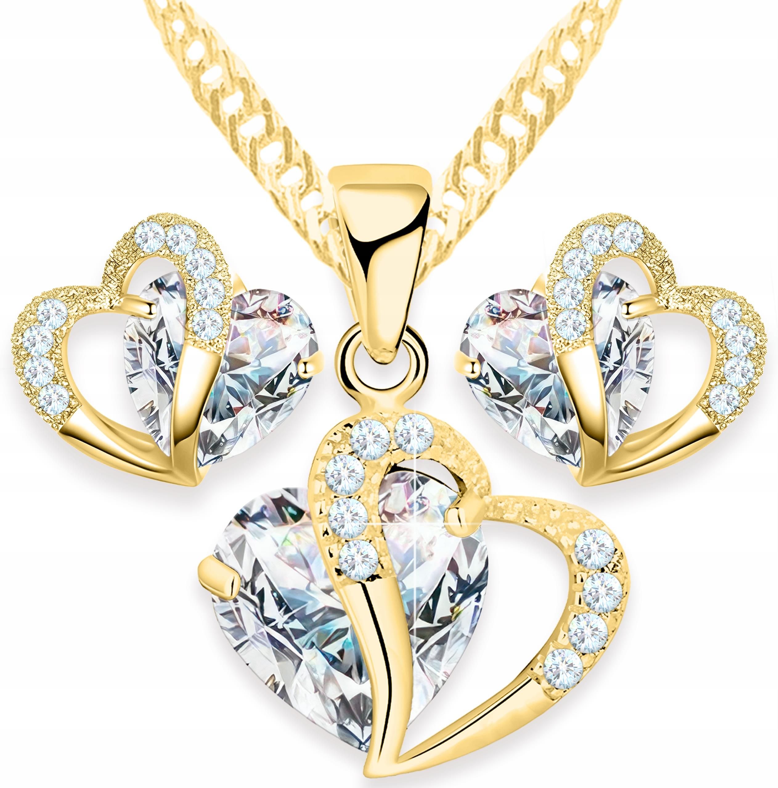 Larezo Zestaw Złoty Naszyjnik Serce I Kolczyki Białe Kryształowe Serca Srebro 925 Czchów