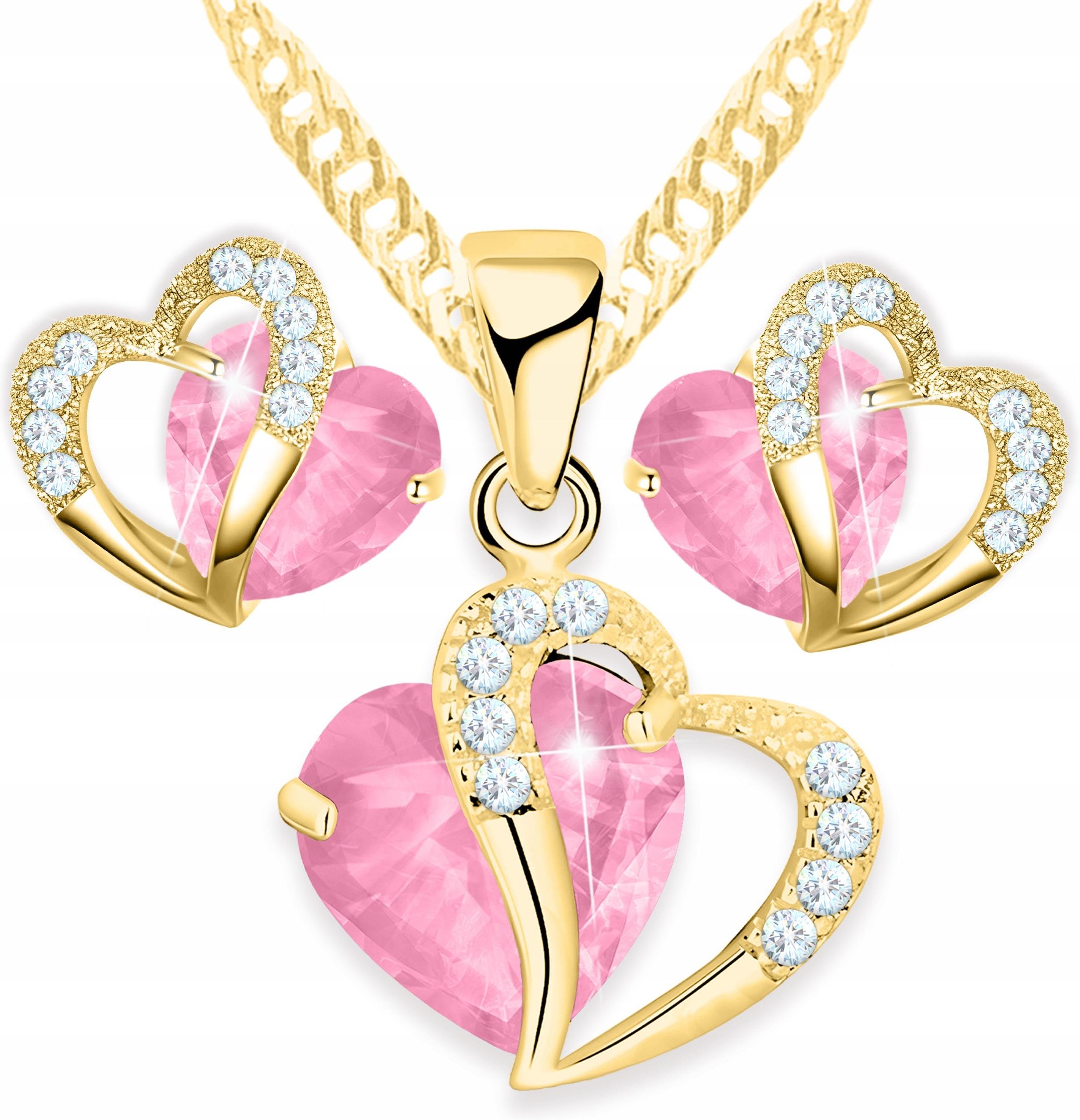Larezo Zestaw Złoty Naszyjnik Serce I Kolczyki Różowe Kryształowe Serca Srebro 925 Czchów