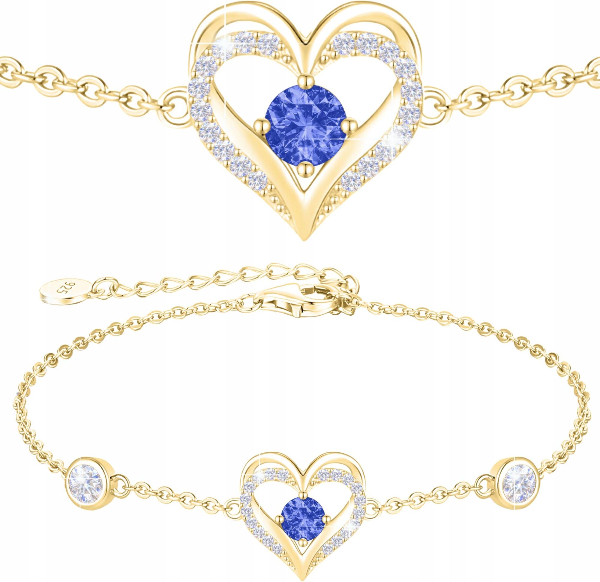 Larezo Złota Bransoletka z Sercem Niebieska Cyrkonia Kryształ Serce Pozłacana 585 Czchów