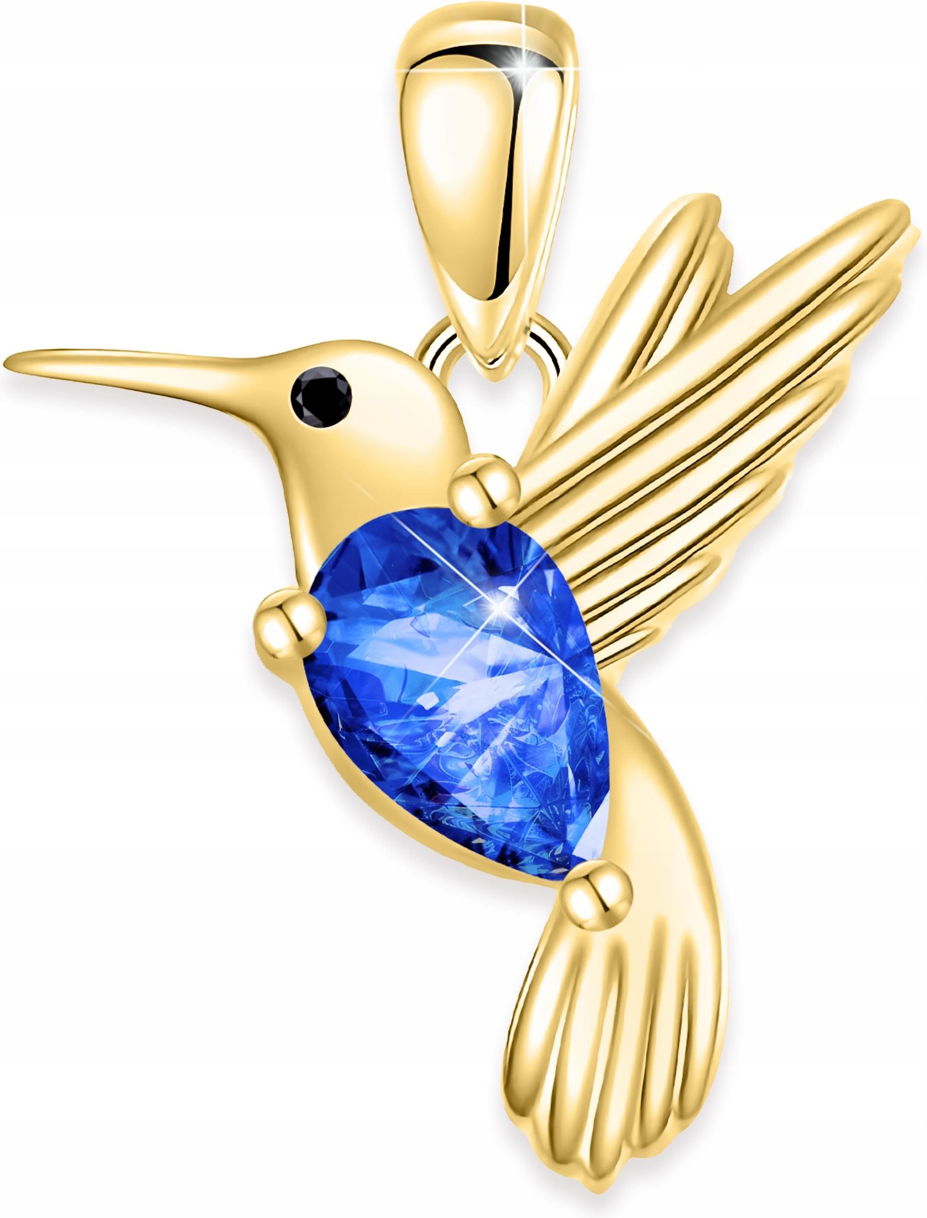 Larezo Złota Zawieszka Do Łańcuszka Kryształowa Niebieska Jaskółka Srebro 925 Czchów
